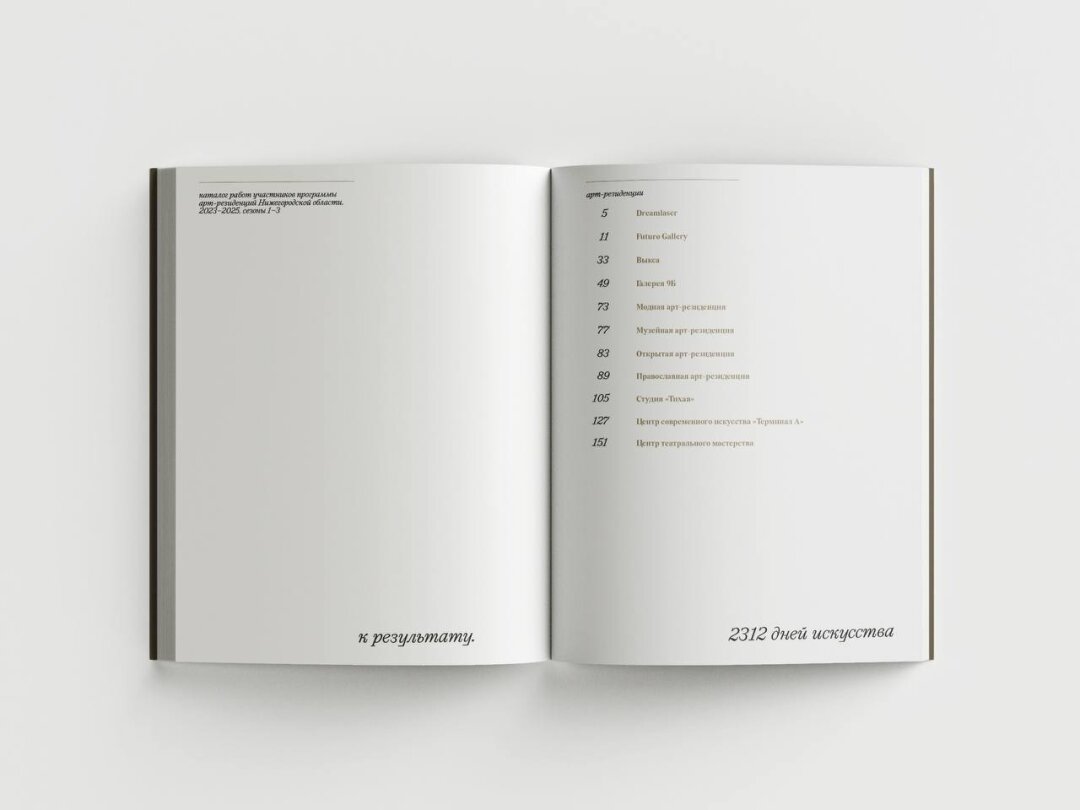 В издание «К результату. 2 312 дней искусства: каталог работ (2023–2025)» войдут проекты FUTURO, «Тихой», dreamlaser, ЦТМ, «Терминала А», «Галереи 9Б», «Выксы», а также музейной, модной (которой мы посвятили свой сентябрьский номер!), инклюзивной и других резиденций.