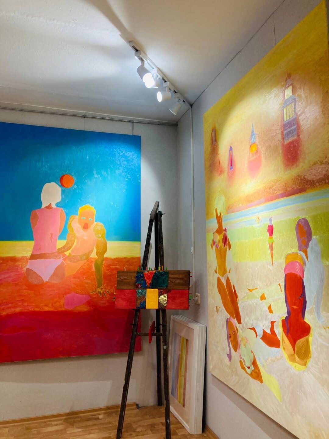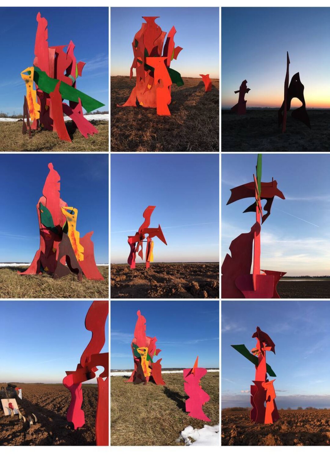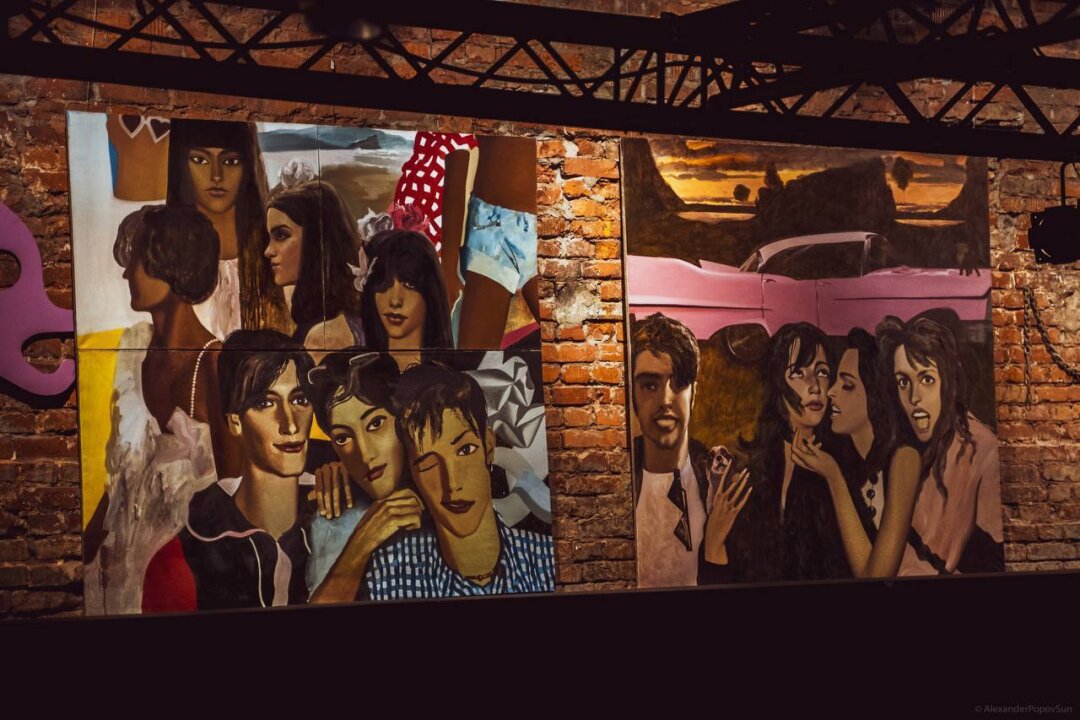 Мои лэнд-артовые скульптуры – крашеные фанерные детали, которые я называю «Великаны-Истуканы», выставляются на природе круглый год. Это такая работа с формой и цветом в пространстве, она дает возможность перейти художественные границы, хотя я не считаю себя ни перформансистом, ни художником, который плотно работает в лэнд-арте. Это скорее желание немного покуражиться, похулиганить. В результате получаются сюрреалистические, психоделические образы, перетекающие потом и в живопись. Летом я работал над беспредметными холстами – это было движение к абстрактности. И опускаясь, скажем так, в низы этого каньона, я понял, что предметность для меня очень важна. Более того, я пропагандирую себя как обладателя классического образования. Поэтому я сейчас работаю и над пейзажами, натюрмортами, портретами, живописным совмещением образов разных эпох (Кати из сериала «Элена Ребята» из 1990-х и элементов французской живописи эпохи рококо, например). Параллельно работаю над мозаикой – некое переосмысление византийского наследия.