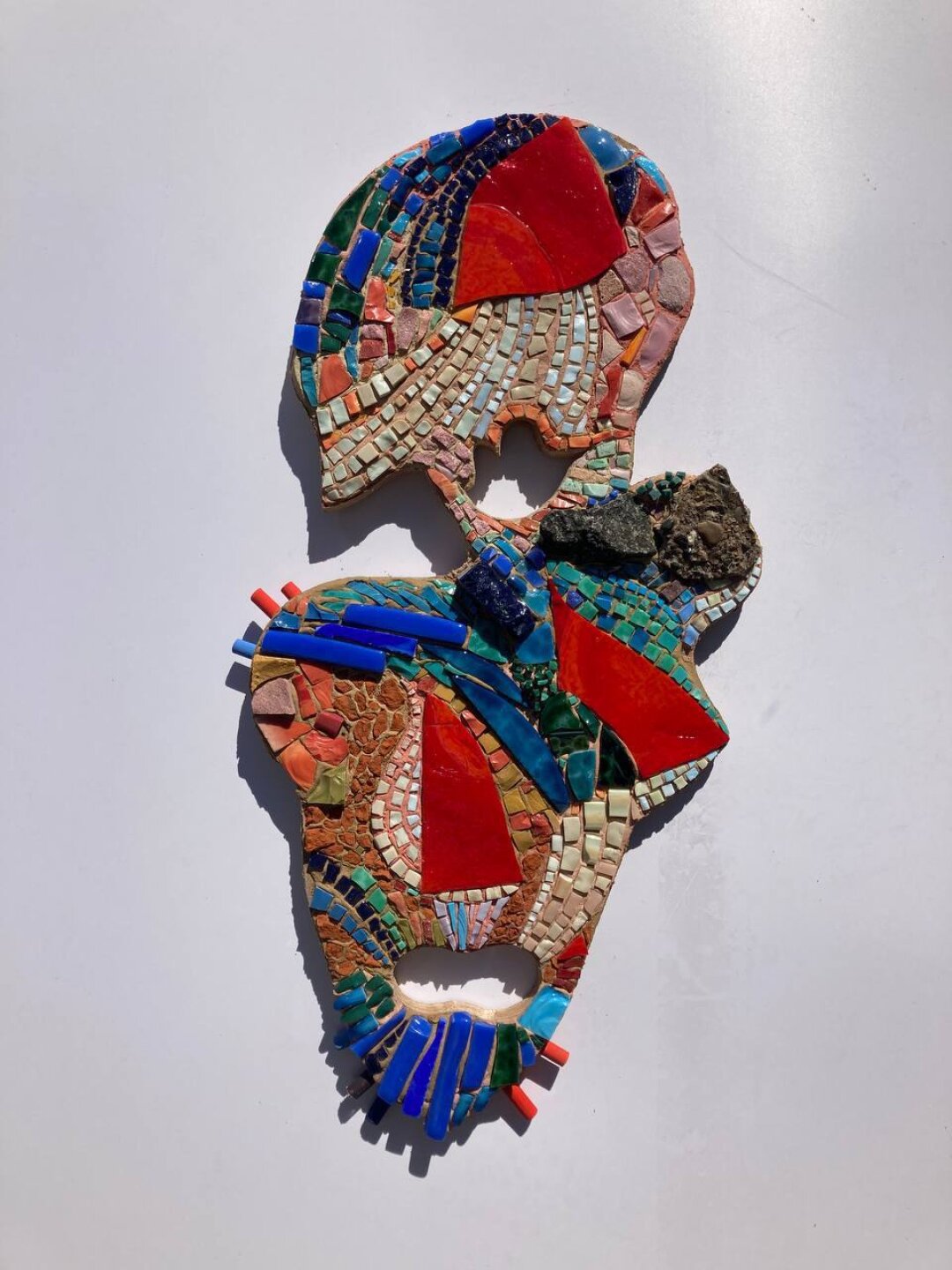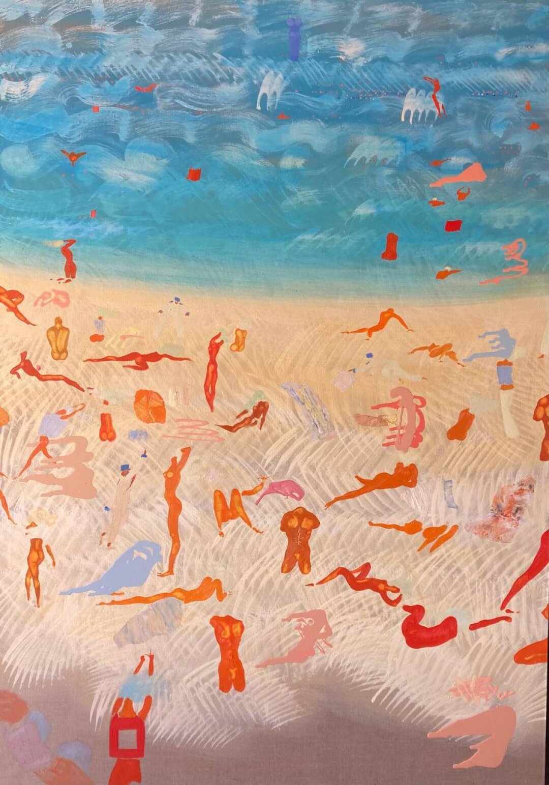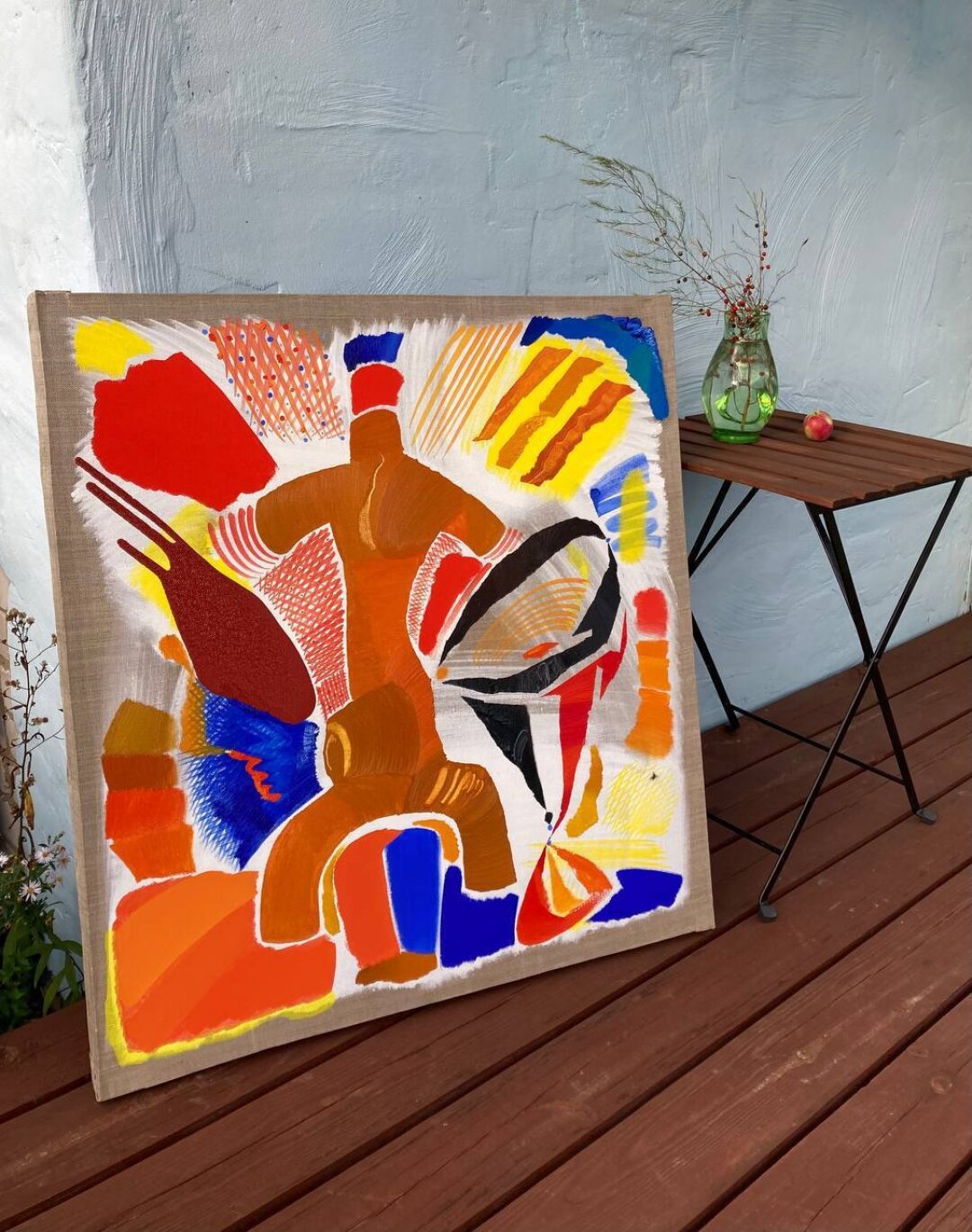 Мои лэнд-артовые скульптуры – крашеные фанерные детали, которые я называю «Великаны-Истуканы», выставляются на природе круглый год. Это такая работа с формой и цветом в пространстве, она дает возможность перейти художественные границы, хотя я не считаю себя ни перформансистом, ни художником, который плотно работает в лэнд-арте. Это скорее желание немного покуражиться, похулиганить. В результате получаются сюрреалистические, психоделические образы, перетекающие потом и в живопись. Летом я работал над беспредметными холстами – это было движение к абстрактности. И опускаясь, скажем так, в низы этого каньона, я понял, что предметность для меня очень важна. Более того, я пропагандирую себя как обладателя классического образования. Поэтому я сейчас работаю и над пейзажами, натюрмортами, портретами, живописным совмещением образов разных эпох (Кати из сериала «Элена Ребята» из 1990-х и элементов французской живописи эпохи рококо, например). Параллельно работаю над мозаикой – некое переосмысление византийского наследия.