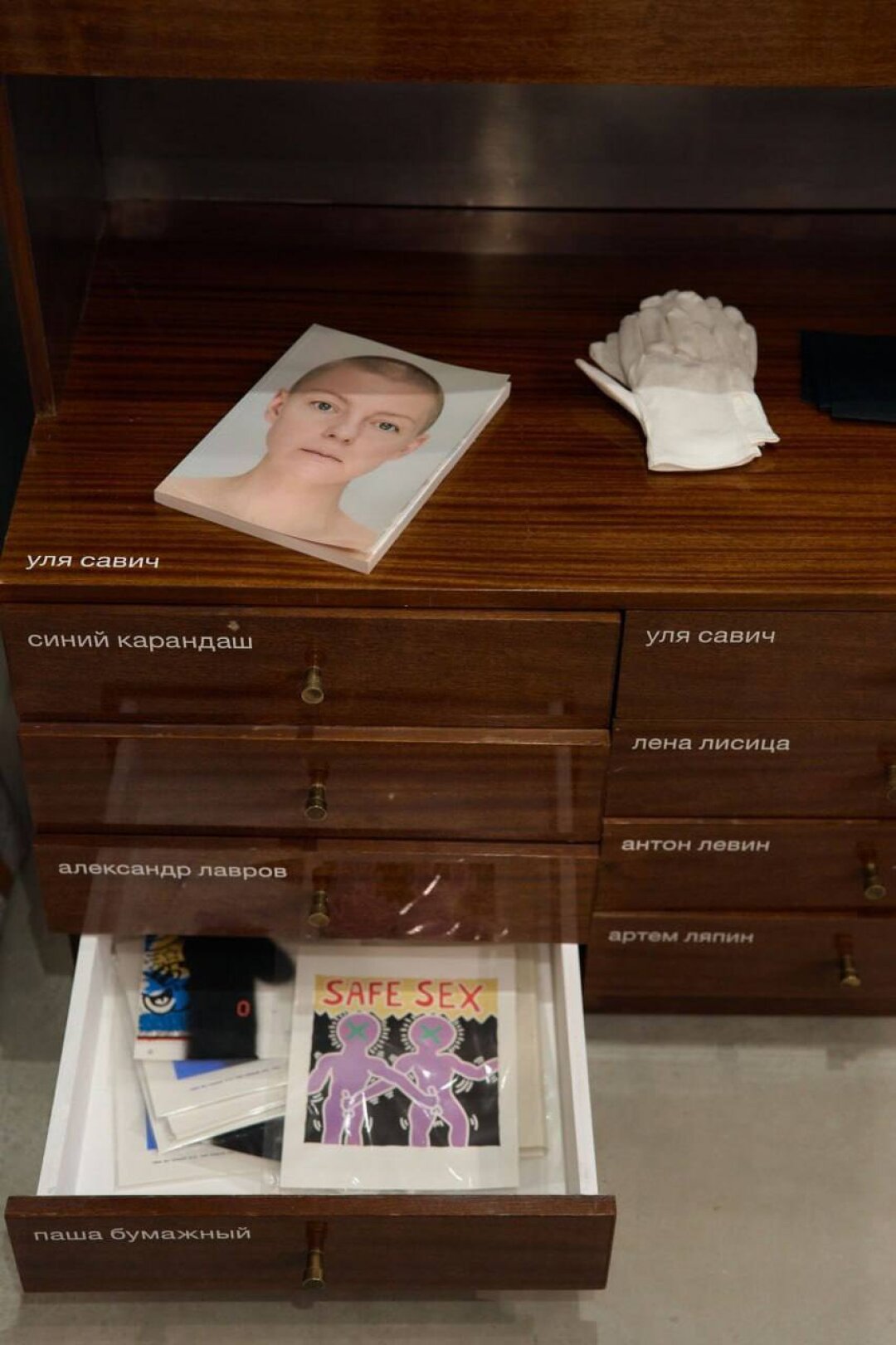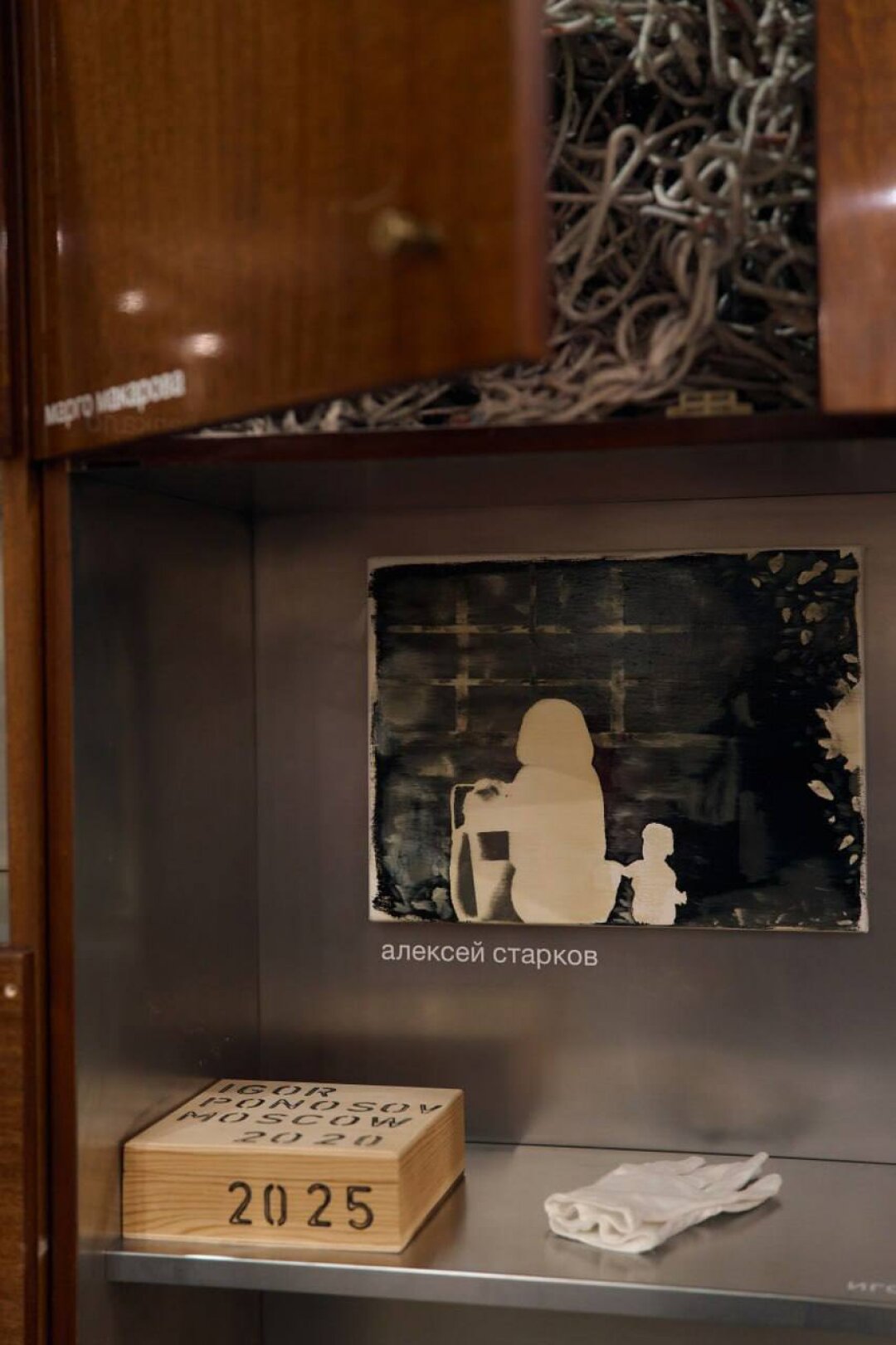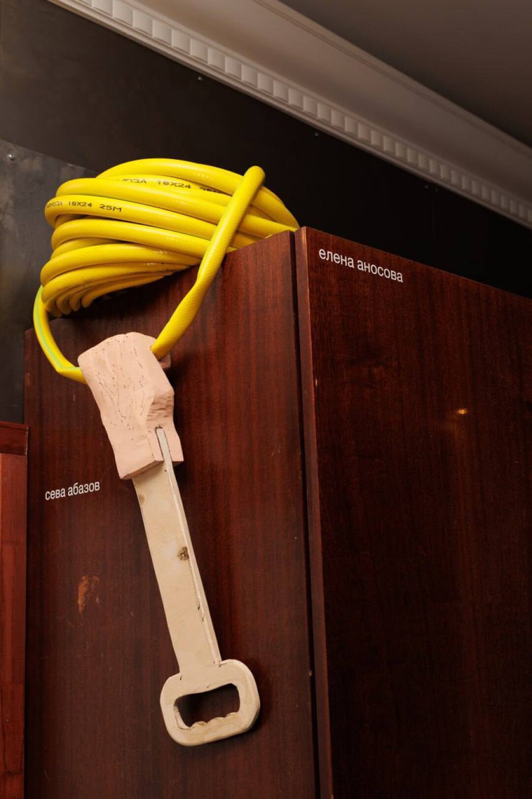 Искусство представлено не только в комиссионке, но и во всех общественных пространствах отеля, поскольку наша главная цель – интегрировать его в повседневную жизнь человека. При этом повседневность не должна украшаться искусством, как бантиком. Оно должно быть интегрировано и затрагивать какие-то слои бессознательного, подталкивать к размышлениям. Вместе с архитектором Алексеем Снетковым мы разработали такой формат, в котором переосмысляем привычный образ советской (рижской) стенки. Наши шкафы доступны для путешествий, открыты зрительскому опыту: гости распахивают ящички, проверяют антресоли и находят там то, что должно быть увиденным.