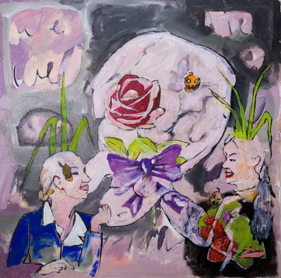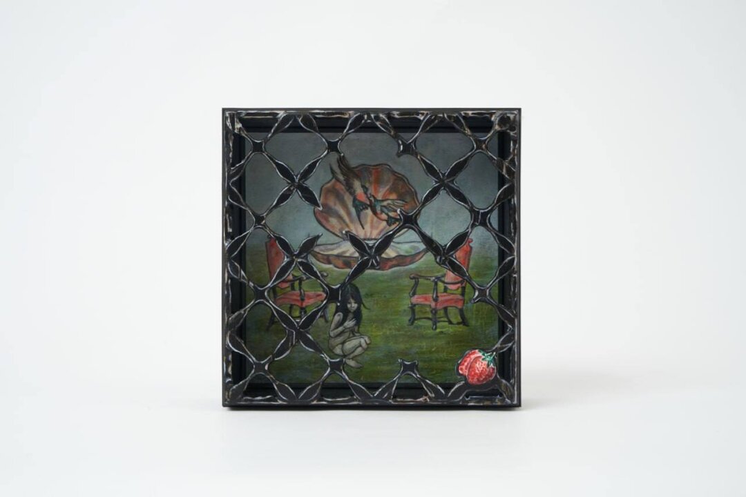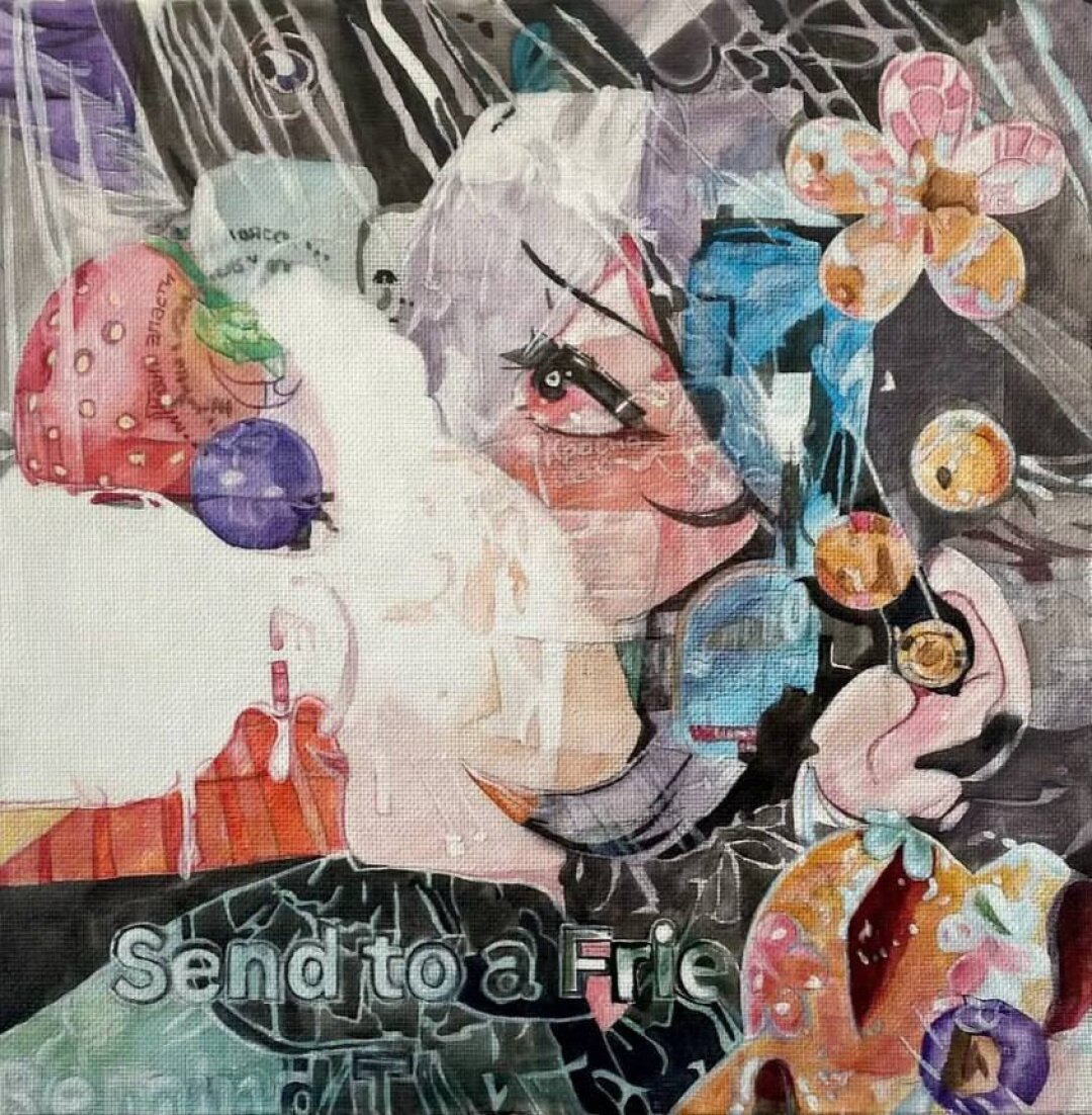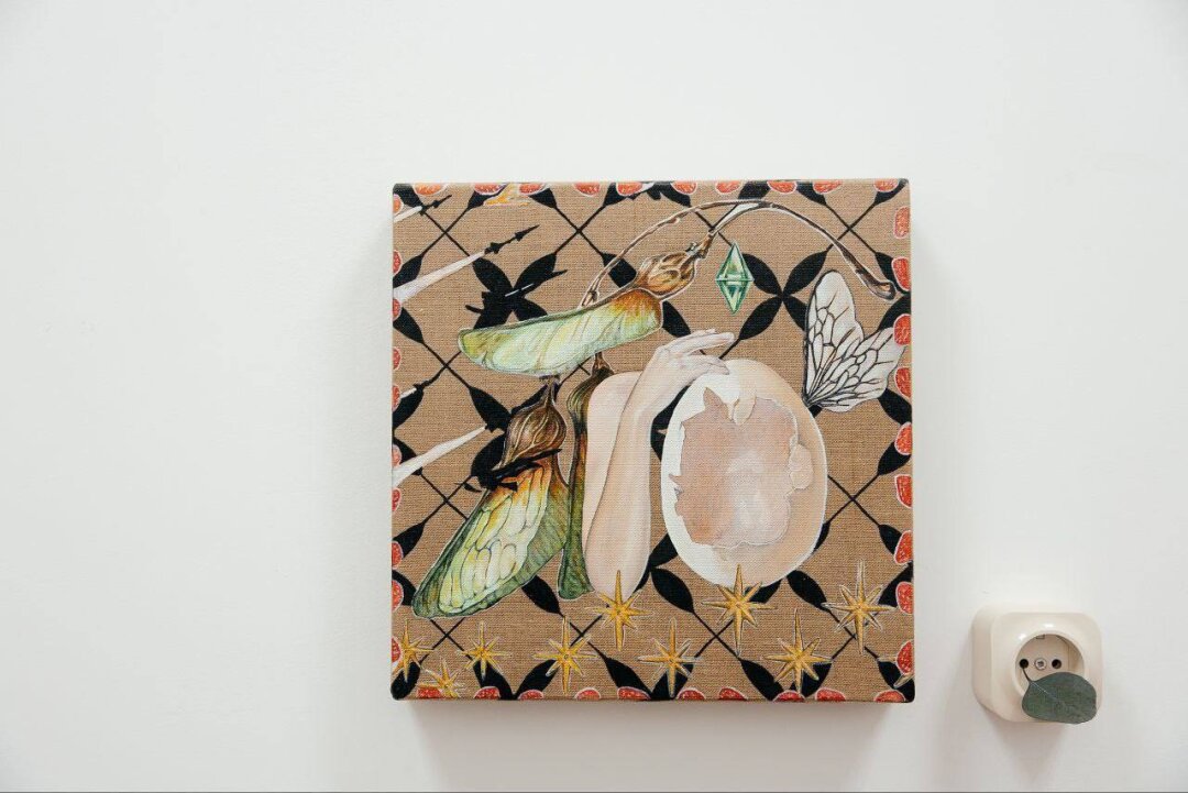 На выставке BREAK-UP BOX в галерее FUTURO на «Винзаводе» Юля представила арт-объект «Вечное возвращение» – миниатюру в рамке с решеткой (исследование темы изоляции и желания). В картине «Обстановка по адресу Клубничный съезд, 24» запечатлена уличная сцена в манере аниме – это смесь ностальгии, урбанистики, подростковых фантазий и нижегородской эстетики. «Бабочки» Юли – метафора трансформации, во время которой тело сливается с природой, с намеком на возрождение. Сюрреалистический портрет send to a friend to remind them to drink – ироничный комментарий к цифровой эпохе, поп-арт с личными мемами.