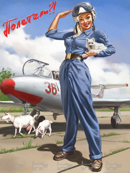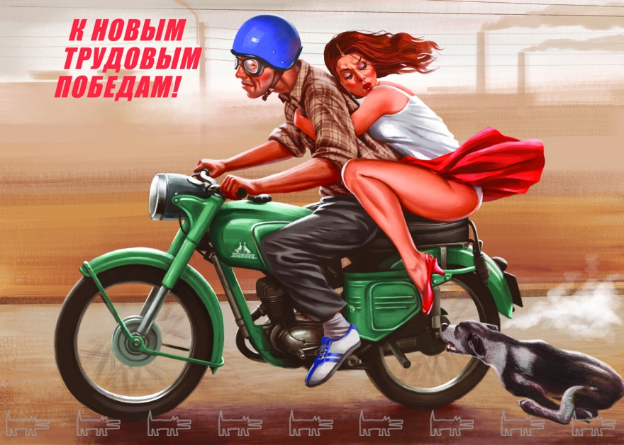 Рожденные в СССР помнят подстерегавшие буквально на каждом шагу суровые советские плакаты, мотивирующие выходить на субботник, не стоять под стрелой или не быть находкой для шпиона. Валерий Барыкин решил внести в них игривый элемент американского пин-апа, словно примиряя две великие державы в их гонке вооружений.