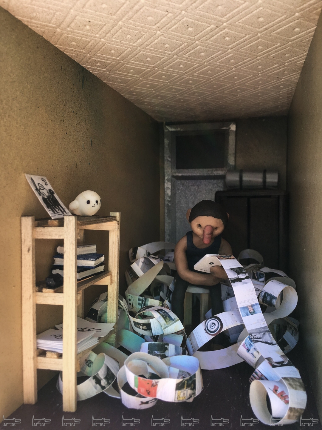 Новая работа художника называется "Бумажная лента". Сам автор поясняет, какую историю рассказывает его миниатюра: "В сутки выкладывается в среднем 80 млн. фотографий в инстаграм. Длина экрана моего телефона 9 см. Если распечатать такую ленту, ее можно было бы растянуть от Калининграда до Петропавловска-Камчатска. За всю историю инстаграма было выложено около 40 млрд. фото. Этой лентой 90 раз можно обернуть экватор или застелить всю площадь России 10 раз. Такой слой бумаги разлагался бы лет 5. А вы помните, что было в вашей ленте вчера?"