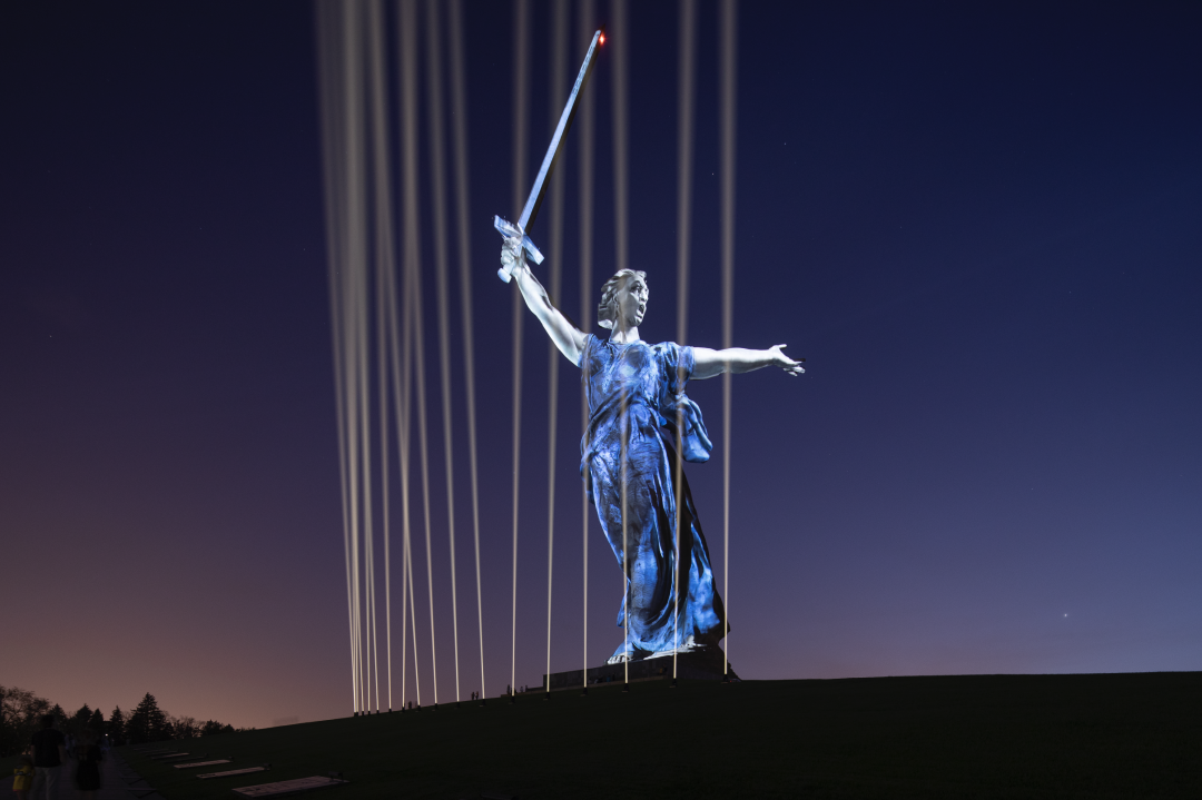 Сейчас медиатехнологии не так часто используются для социальных проектов из-за своей дороговизны. Но мэппинг и световые шоу периодически применяют для рассказа о войне. Яркий пример — крупномасштабная инсталляция студии dreamlaser на скульптуру «Родина-Мать Зовет!».