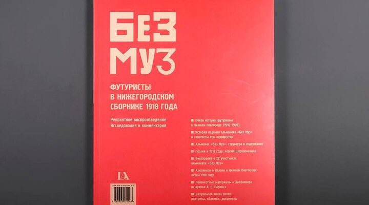 Изначально «БЕЗ МУЗ» задумывался как журнал, но вышел всего один номер. Авангардистский поэтический сборник напечатали в Нижнем Новгороде в 1918 году по задумке местного поэта, художника, циркача и авиатора (!) Федора Богородского. Среди 20 авторов – Велимир Хлебников, Николай Асеев, Константин Большаков, Рюрик Ивнев, Сергей Третьяков, Вадим Шершеневич – всё известные футуристы. 100 с лишним лет спустя издательство «ДА» выпустило репринт «БЕЗ МУЗ» с исследованиями, комментариями, подробными биосправками и 90 редкими иллюстрациями.