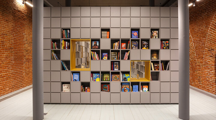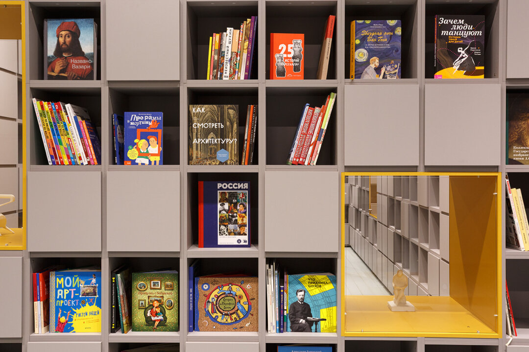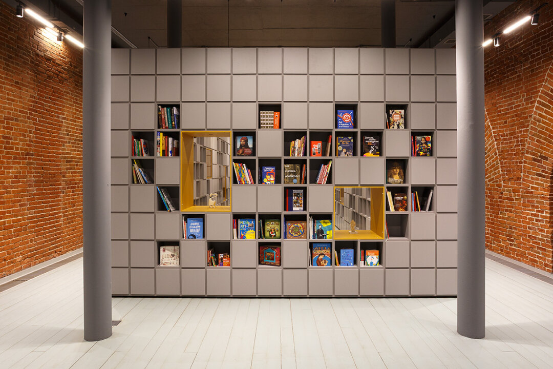 К примеру, место для проведения событий трансформируется в лекторий или уютную «гостиную» для чтения вслух. В стеллажах для книг предусмотрены остекленные сквозные витринные полки для размещения сменяемой экспозиции. Пространство специально устроено так, чтобы и во время проведения событий у посетителей было место, где можно насладиться книгами и тихим чтением.