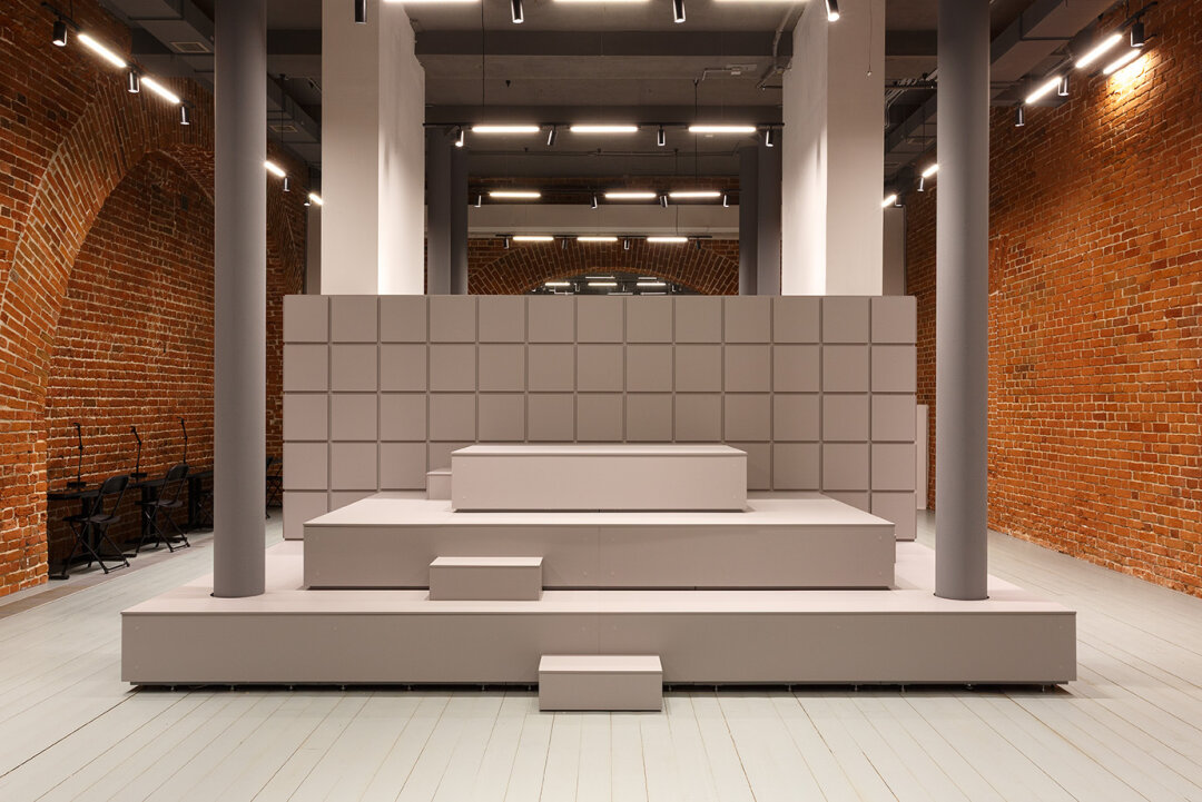 Минималистичное пространство – от дизайнерского бюро [MISH] studio (в портфолио совместные проекты с Пушкинским, студией «Тихая», FUTURO, Галереей 9Б, Cosmoscow, blazar и др.). Здесь есть зоны отдыха, чтения, встреч и несколько рабочих мест. Отличительная особенность – мебель, которую можно изменять под разные цели.