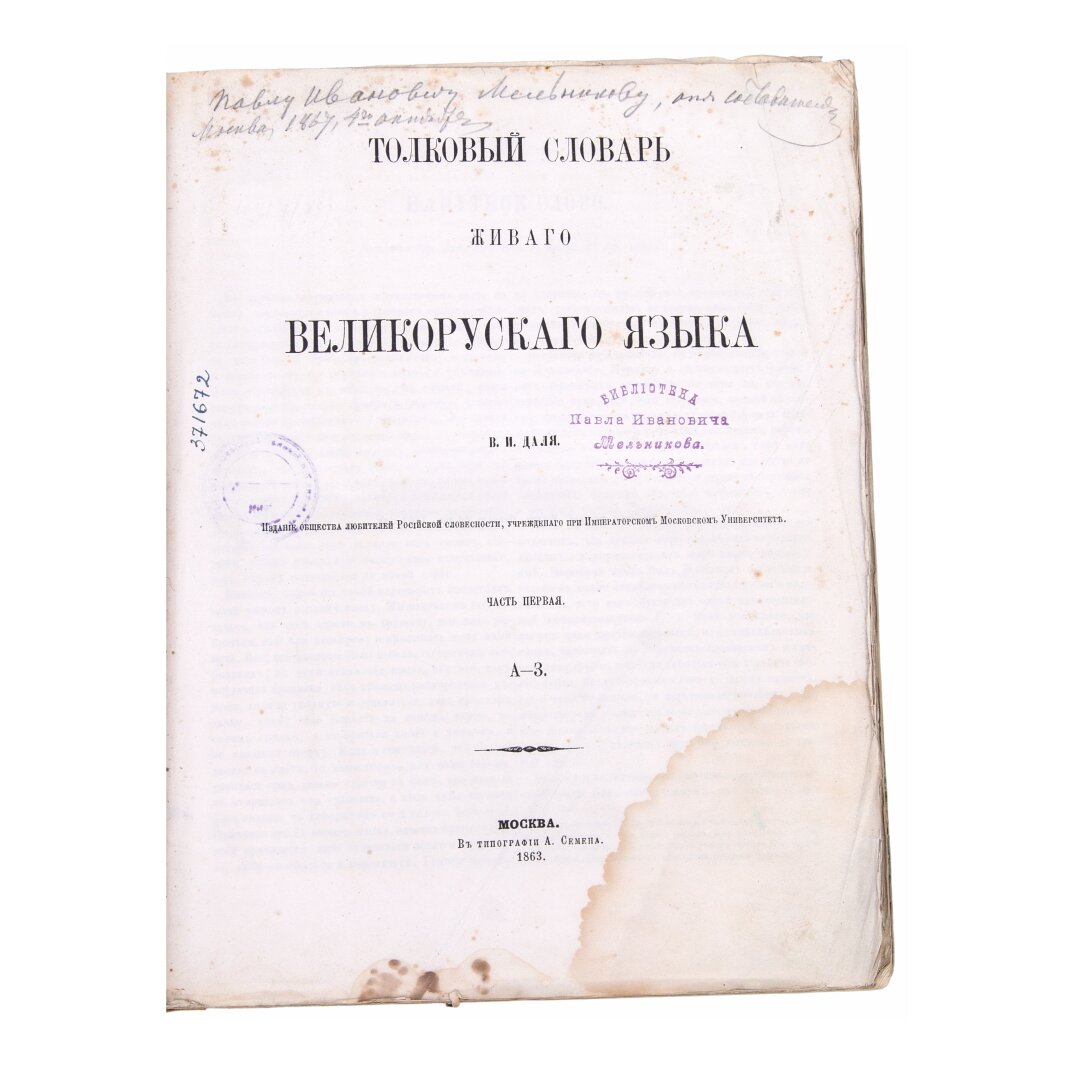 В фонде нижегородской Ленинки хранится экземпляр первого (!) издания «Толкового словаря…» с автографом составителя. На титульном листе простым карандашом написано: «Павлу Ивановичу Мельникову от составителя. 1867 год 4 октября». По воспоминаниям сына писателя, это издание было настольной книгой автора «В лесах» и постоянно лежало на его рабочем столе.