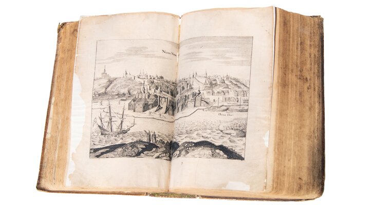 В книге на немецком языке содержится первое (!) изображение Нижнего Новгорода. Известно несколько вариантов гравюры с изображением нашего города из изданий книги 1647 и 1656 годов. Гравюра с раннего издания достовернее передает вид кремля с его башнями, а на гравюре с поздней версии изображены только 9 из 13 башен, некоторые круглые башни в книге квадратные, крепость не имеет уступов и не показан сквозной проезд Ивановской башни.