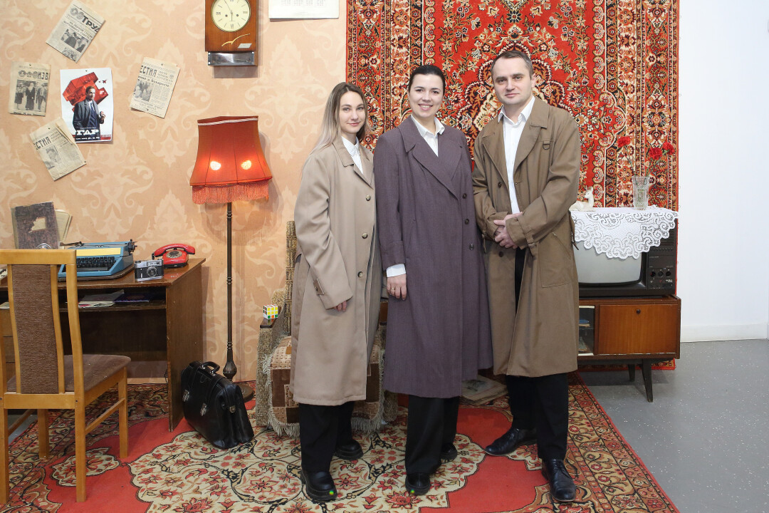 В фойе киноцентра «Рекорд», где проходила премьера, гостей встречала фотозона с воссозданным интерьером рубежа эпох, галерея из обложек сатирического ретро-журнала «Крокодил» и выставка игр и головоломок, среди которых особо выделялись огромные кубики Рубика.