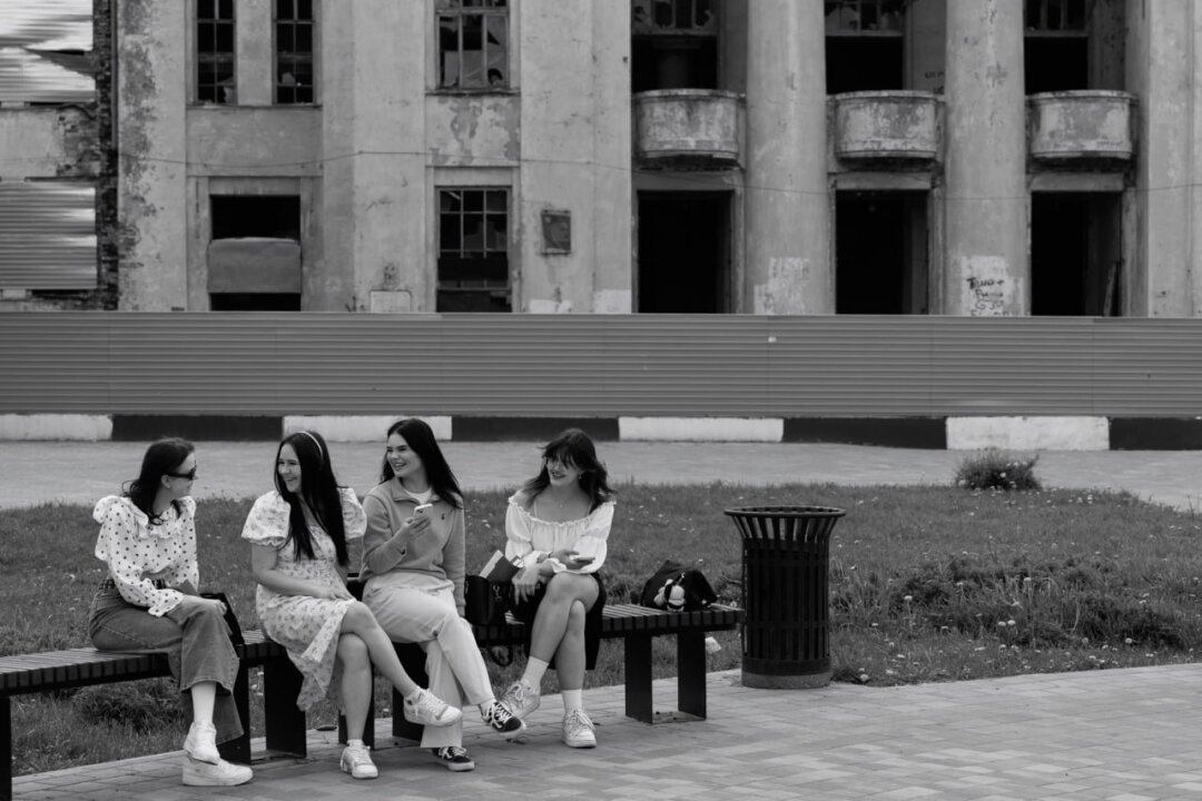 Фото, которым я хочу поделиться, снято в моем родном районе, напротив ДК Ленина. На фоне довольно живописной разрухи — веселые, улыбающиеся девушки. Мне понравился этот контраст и композиция кадра, как забор делит его пополам. Сейчас я все больше учусь снимать, и получается так, что кадры, сделанные пару месяцев назад, мне уже не нравятся. Но этот нравится до сих пор.