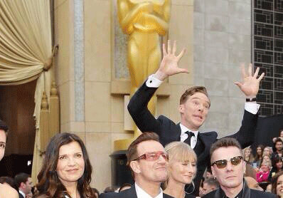 Камбербэтч, который не засветился ни в одной номинации, казалось, был ничуть не расстроен. Свой безукоризненно строгий внешний вид актер компенсировал шутками и странными выходками. Например, увидев на красной дорожке группу U2, скромно выстроившуюся в ряд для фотосессии, Камбербэтч неожиданно выпрыгнул из-за их спины, размахивая руками и делая «страшное» лицо. Снимок моментально растиражировало множество изданий.