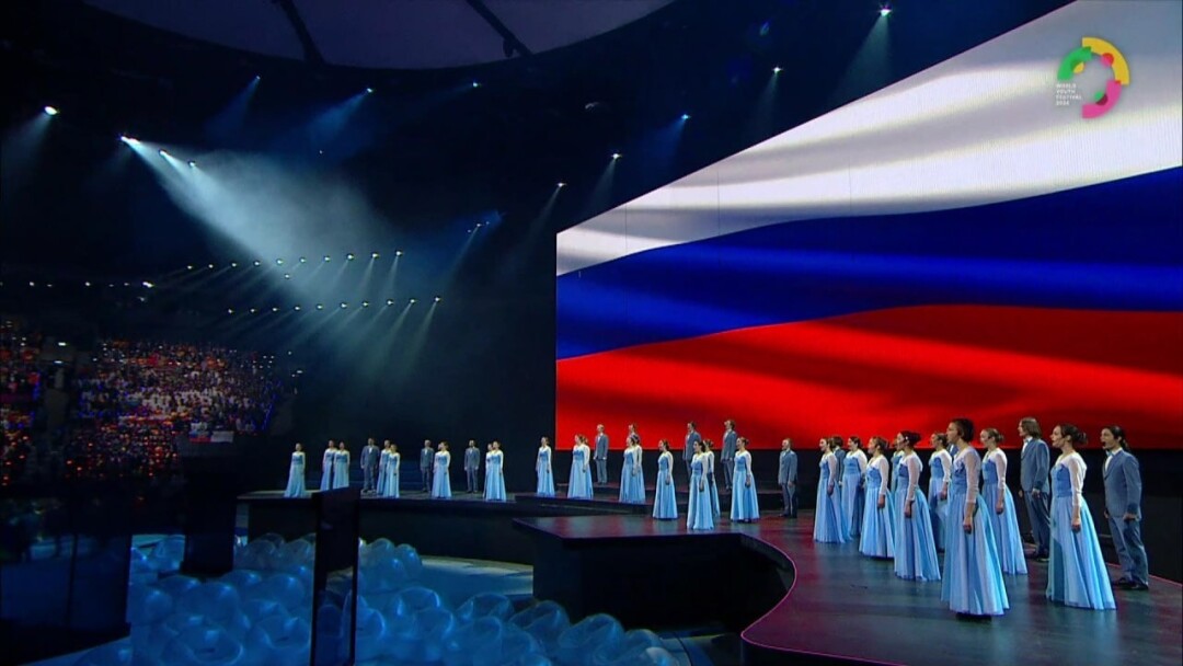 Нижегородский хор НГЛУ имени Добролюбова выступил на закрытии Всемирного фестиваля молодежи-2024! Музыканты исполнили гимн.