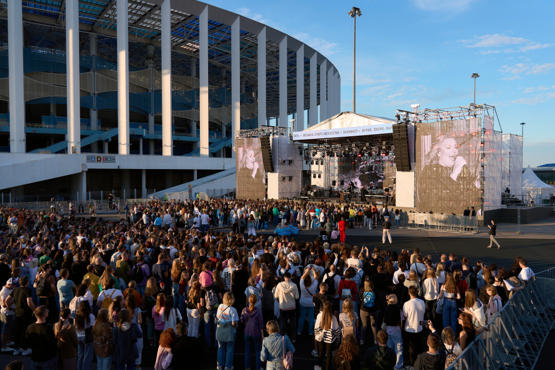 После выступления небольшой перерыв, за время которого мы успеваем добежать до стадионной локации.