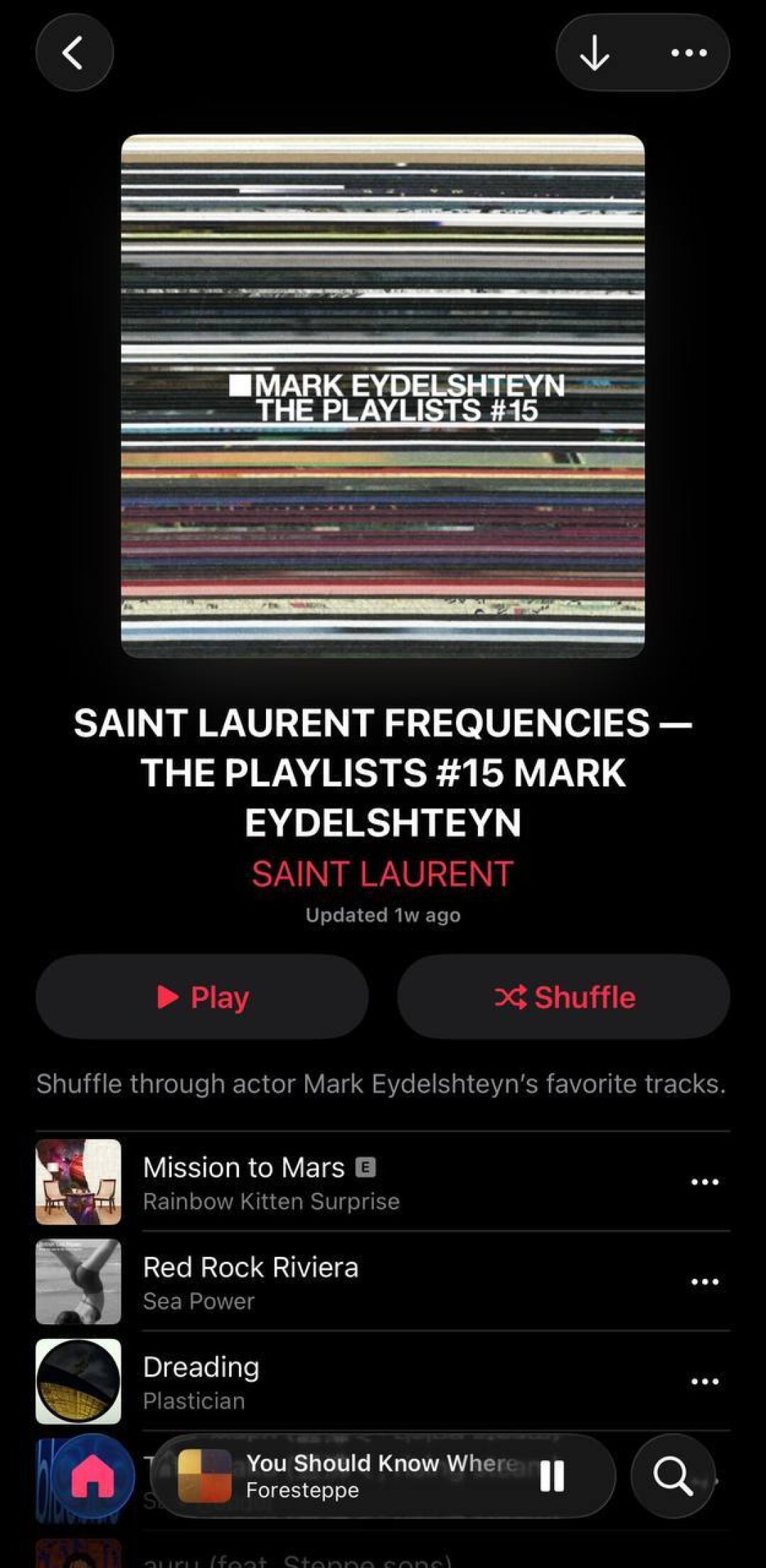 Фэшн-гигант опубликовал на стриминговых сервисах 15-й по счету плейлист с подборкой треков от приглашенных гостей. До были любимые композиции Гаспара Ноэ, Шарлотты Гинсбург, Нади Ли Коэн, Эммануэль Альт и др.