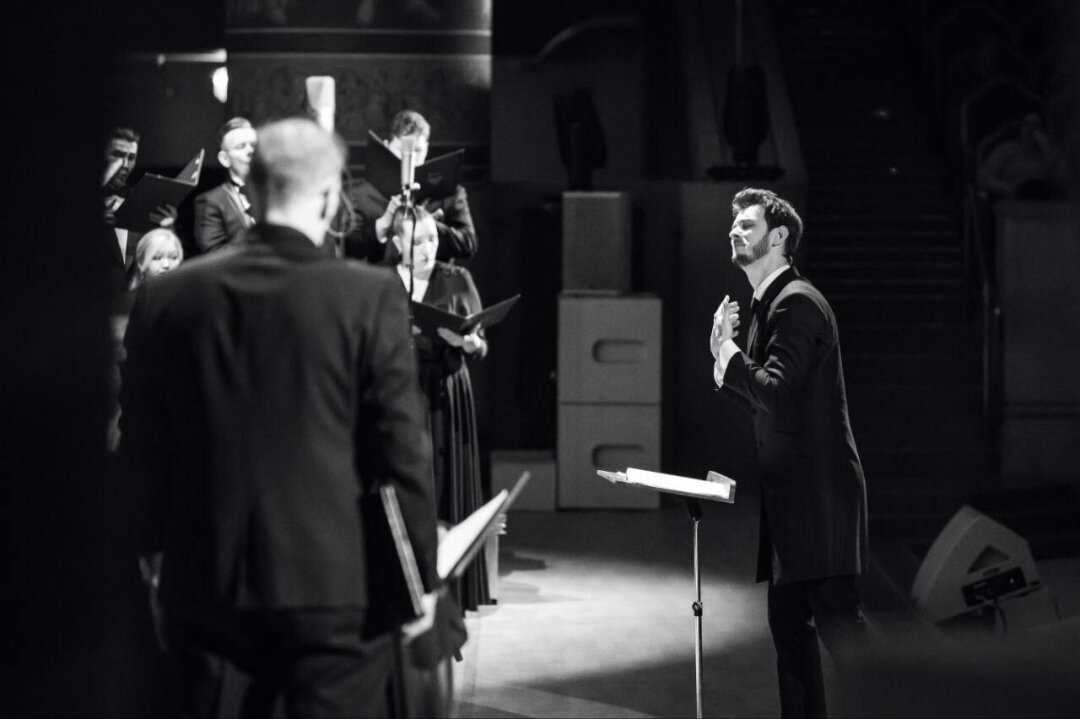 Репертуар нашего коллектива заключает в себе как сочинения для хора а'капелла, так и произведения в сопровождении симфонического оркестра. Когда мы готовим нечто грандиозное для хора и оркестра, образование и опыт симфонического дирижера помогают. Сначала тщательно готовишь солистов, хор, параллельно занимаешься с оркестром, и потом эти линии объединяются. Обычно хор готовит один человек, а оркестром управляет другой. А тут единую концепцию вырабатывает один человек, это, на мой взгляд, продуктивнее.