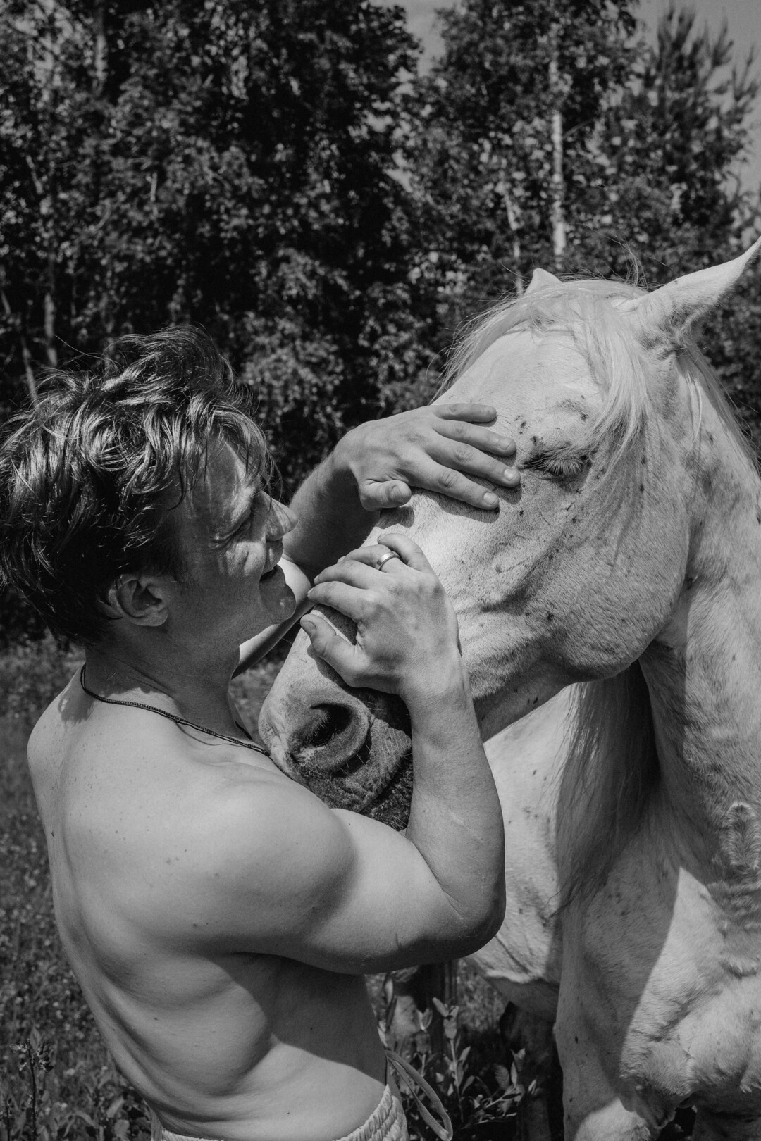 Андрей Черепанов, очень интересный артист, который не первый год работает у нас в театре. Он нашел контакт со всеми лошадьми и сейчас нарабатывает пластический опыт. Думаю, Андрей покажет интересные выходы к свободе.