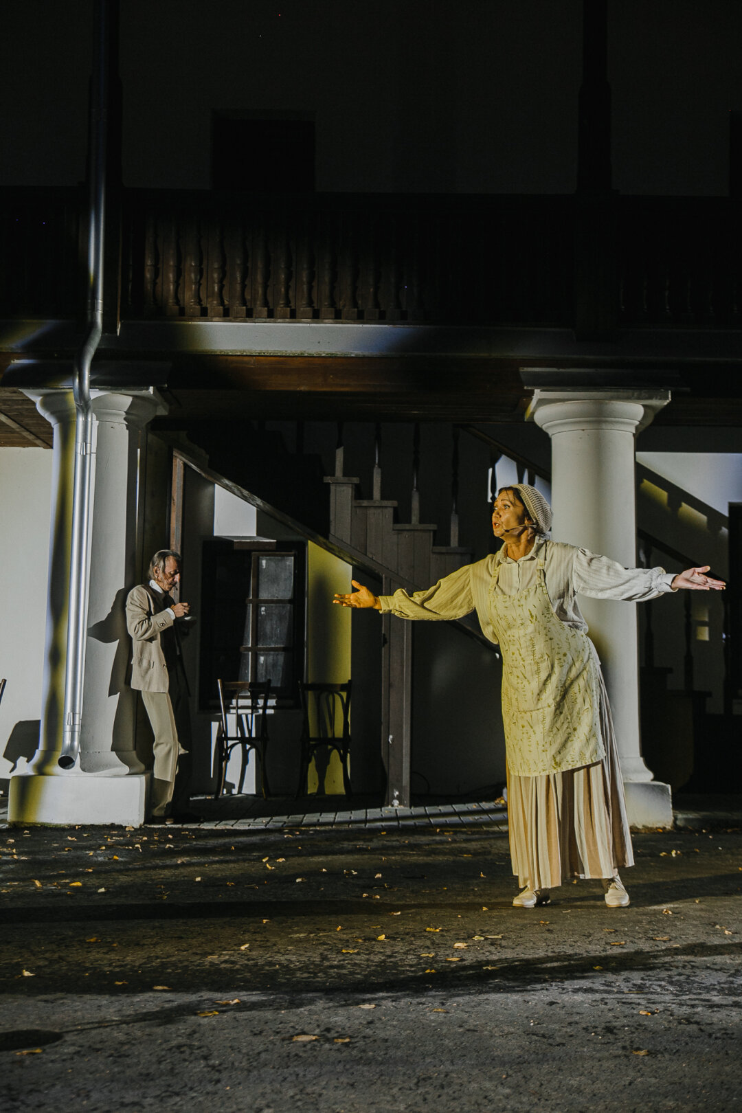 Выдыхали (и завороженно вздыхали!) во дворе усадьбы Рябининой – чеховского «Дядю Ваню» столичный режиссер Виктория Печерникова насытила контрастами – музыкальными (от колокольного звона Вознесенской церкви до Наутилуса Помпилиуса), световыми и сценографическими (не первый раз на сцене «Специфика» машинерия!).