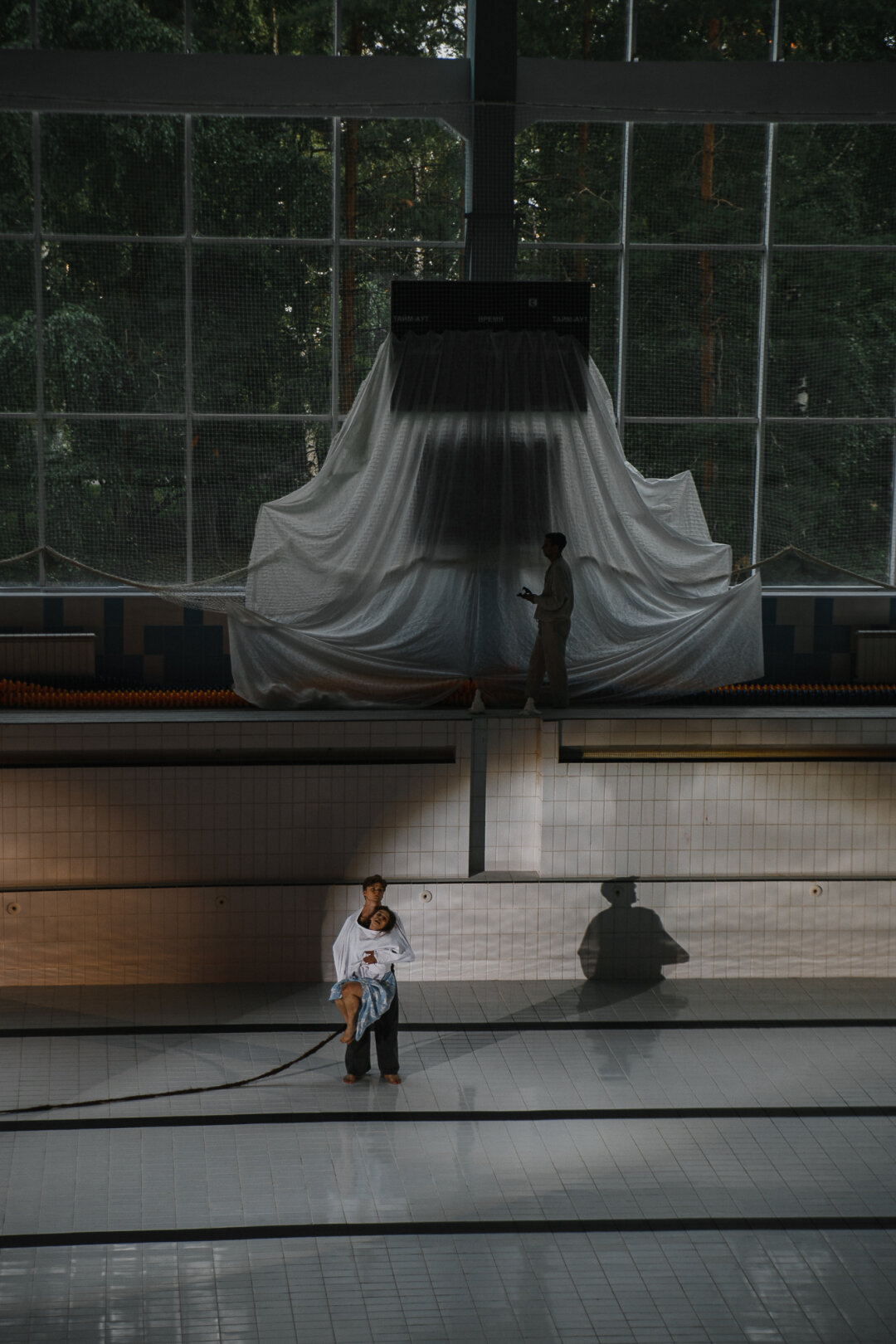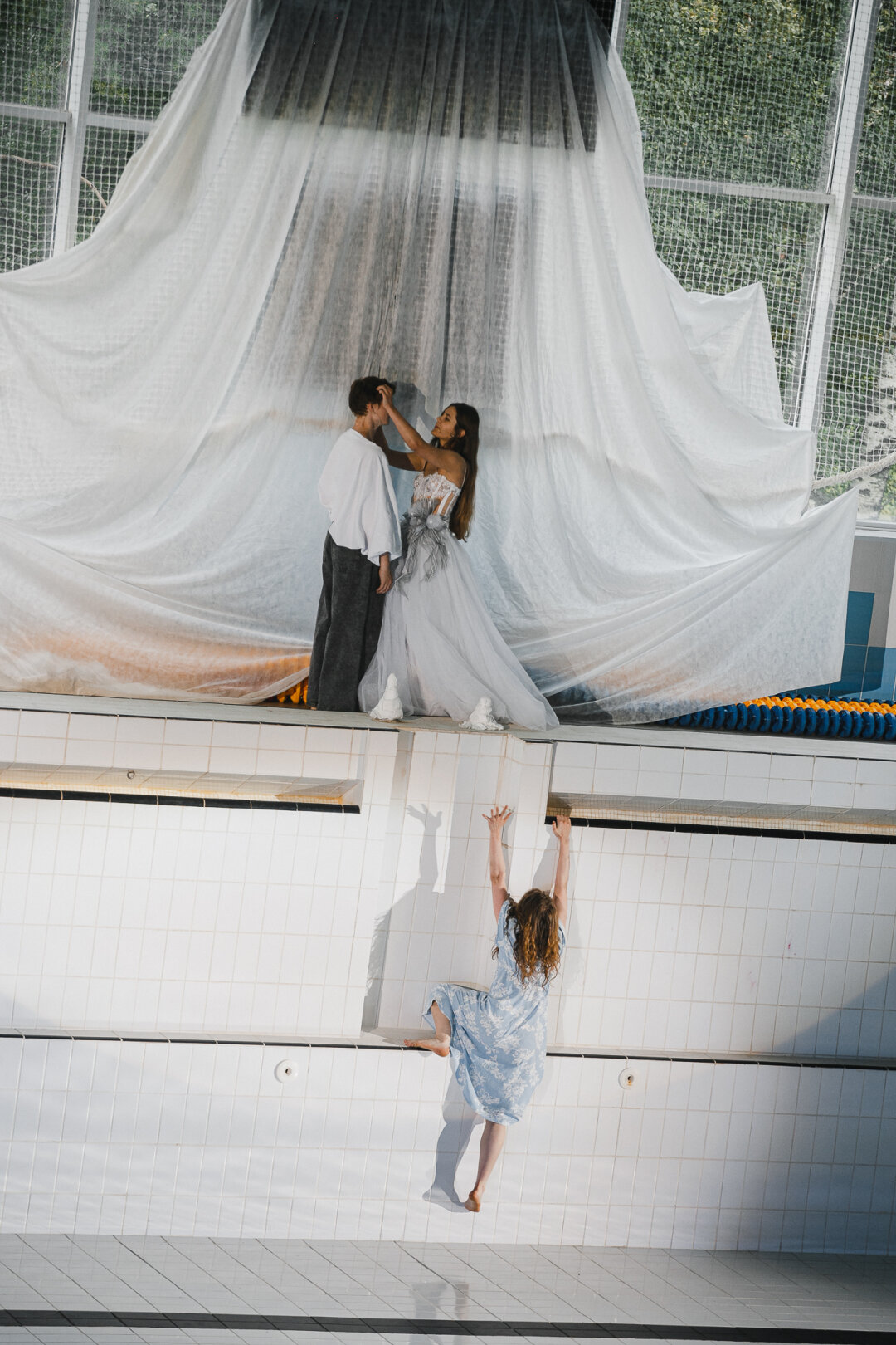 Екатерина Половцева в своей «Русалке» много работала с пластикой, танцем и звуком. Показ состоялся в бассейне «Дельфин», где своя уникальная акустика, которая придавала мистичности и сказочности происходящему. Кроме того, режиссер экспериментировала с визуальными метафорами через реквизит — многометровую полиэтиленовую пленку, имитирующую волны Днепра, веревки и сети, а также через само пространство — стерильность кафельной чаши бассейна, отсутствие воды (жизни). Надя Кубайлат в «Бесприданнице» провела параллель между образом героини, уязвимой перед обстоятельствами, и огромным торговым судном — баржей, на которой разворачивалось действие. Тема торговли тоже стала значимой в спектакле — Лариса уподобляется товару, у нее словно нет собственной воли, зритель сопереживает ей.