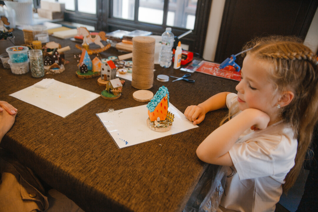 Наслушавшись Кобейна и компанию, направляемся в сторону торговых рядов на мастер-класс по созданию композиции из природных материалов. Из предложенного многообразия конструкций выбираем дом и начинаем возводить его на мелкой гальке.