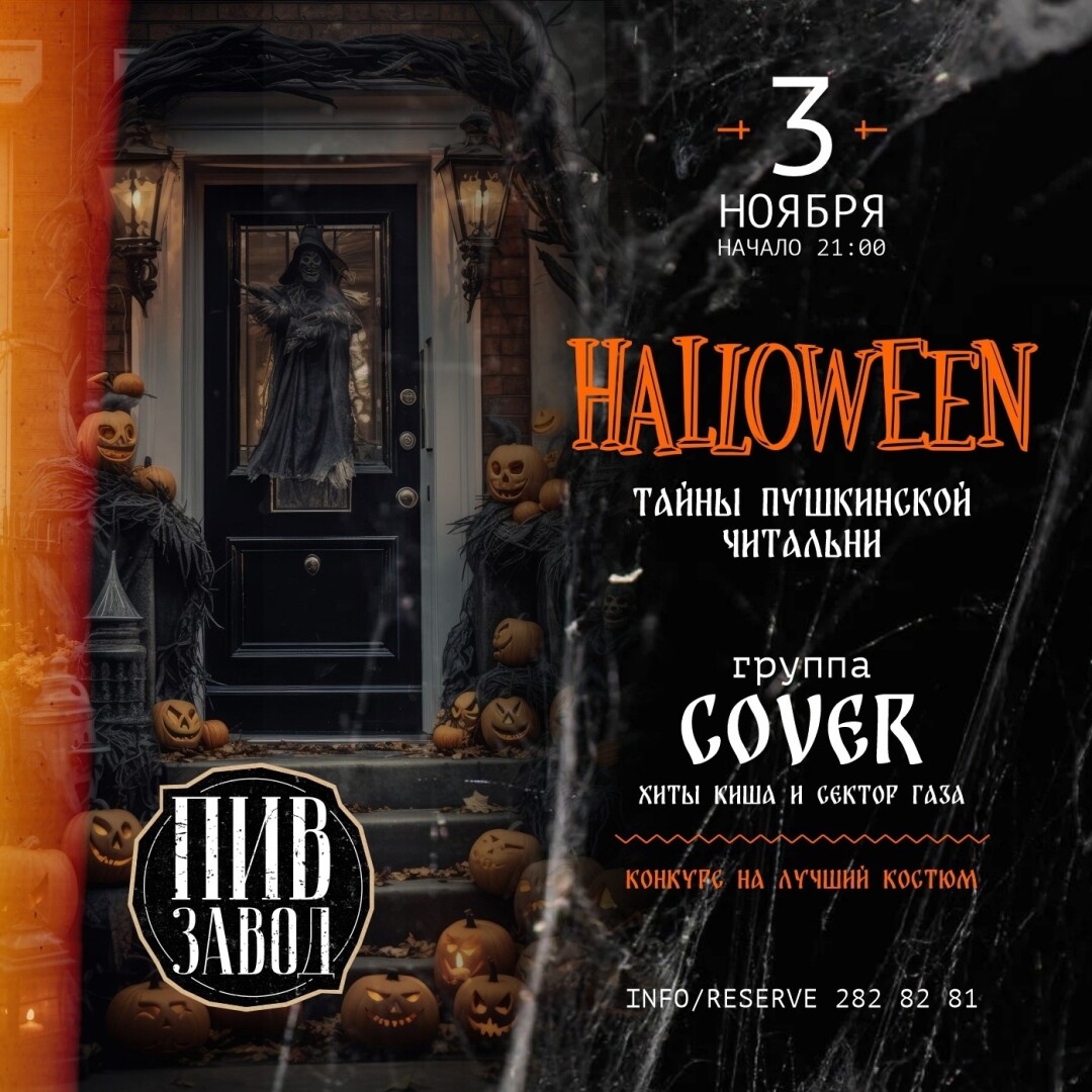 3 ноября в 21:00 раскроем все тайны здания бывшей Пушкинской читальни, а заодно поборемся за звание самого устрашающего костюма. За праздничное настроение будет отвечать группа COVËR с хитами КИШа и Сектора Газа.