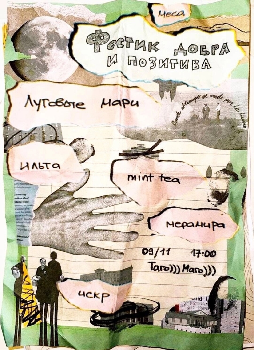 9 ноября в 17:00 греемся в лучах добра и позитива (организаторы обещают их наличие) от теплейших нижегородских и московских шугейз-ансамблей (плюс Йошкар-Ола). В лайнапе марийскиий инди-фолк от «Луговых Мари» (поют на марийском!), альтернативный рок «Ильты», сложносочиненная «Мерамира», дрим-поп проект mint tea и двойной фрешмен «Искр», со своими пульсирующими импровизациями.