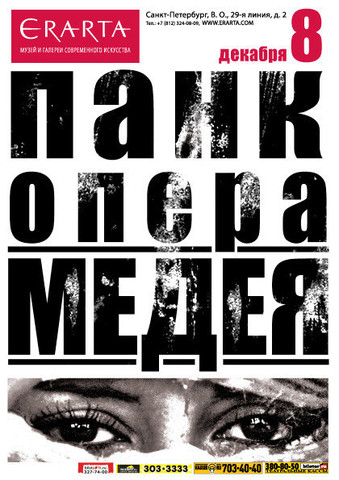8 декабря в Эрарте - панк-опера "Медея". Постановка Джулиано Ди Капуа по поэме Лехи Никонова, гран-при премии имени Курехина. Сценограф - Павел Семченко (театр «АХЕ»), в главной роли Илона Маркарова.