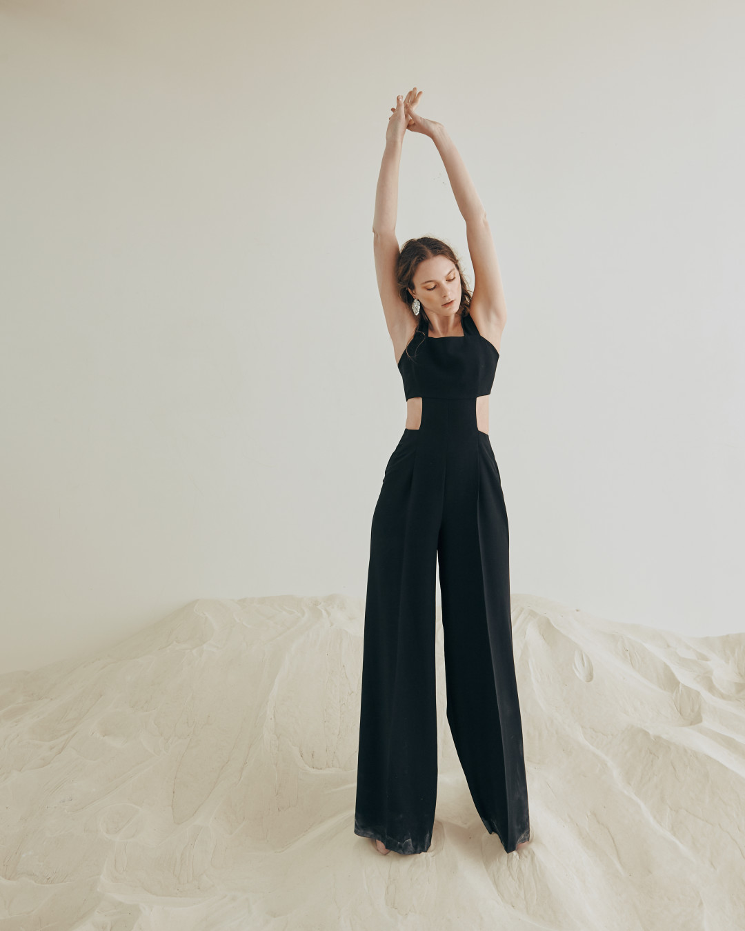 Я люблю расслабленный шик и черный цвет, лаконичные образы в сочетании со сложным кроем. Именно такой наш архитектурный комбинезон из летней коллекции, который я ношу уже сейчас.