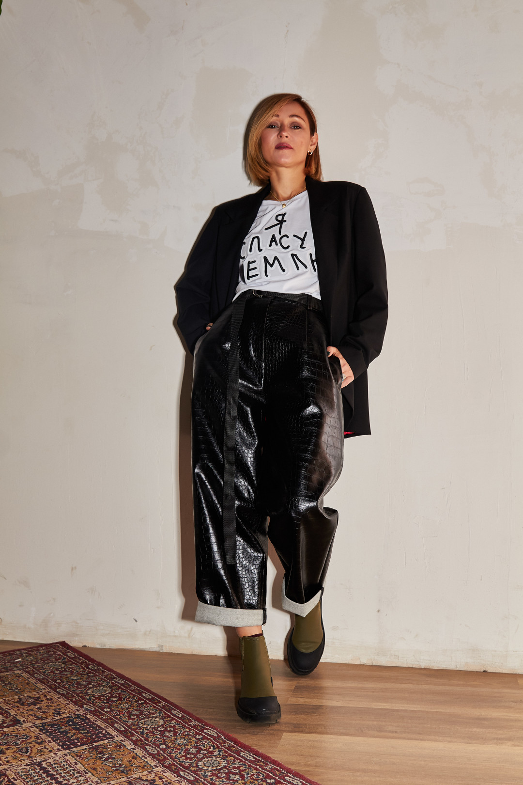 Безусловно! Причем, я ношу только свои вещи, но делаю это не так, как большинство моих покупательниц. Например, у нас есть брюки-палаццо, у которых высокая посадка на талии, но я их ношу низко спущенными, как мужские брюки, которые мне велики. Один раз показала это в сториз, но никто не вдохновился. Мне однажды сказали, что я похожа на Жанну Агузарову: например, когда после Милана мы поехали в Париж, я надела винтажную мужскую рубашку и поверх нее бюст от купальника. Даже там после такого эксперимента на меня показывали пальцем – было весело!