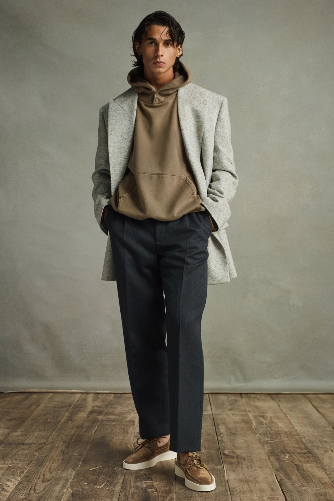Точнее прощание с жесткой офисной классикой. Те, кто считают, что это произошло из-за перехода в офлайновый режим работы, сильно ошибаются. На самом деле это возвращение к мягкому силуэту — часть плановой эволюции мужского костюма, которая уже случалась в 80-е с подачи Giorgio Armani, а до этого — в 30-е. Искусство носить костюм — это способность соответствовать времени и умение жонглировать стилями. Свежее правило и ориентир при выборе нового костюма — расслабленность и элегантная небрежность, близкая к кимоно и восточной традиции одежды в целом.