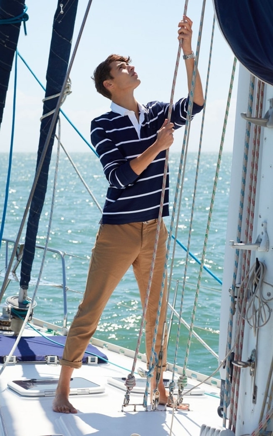 Вот это печальный тренд. Девяносто процентов мужской одежды происходят из военной формы, она горячо любима и уважаема нами, как часть преемственности поколений и благородной демонстрации силы. Конечно, за последнее время мы слишком много и крайне буквально обращались к военной теме в одежде и, видимо, просто подустали от всего этого хаки и камуфляжа. Изобилие жестокости и ограничений последнего времени тоже не способствовали популяризации всего агрессивного, а именно таким мы сейчас воспринимаем стиль, который, я уверен, вернется в моду. Но не стоит отчаиваться, для любителей формы наступают времена военно-морской эстетики и образа моряка: хорошего парня в тельняшке и бушлате.