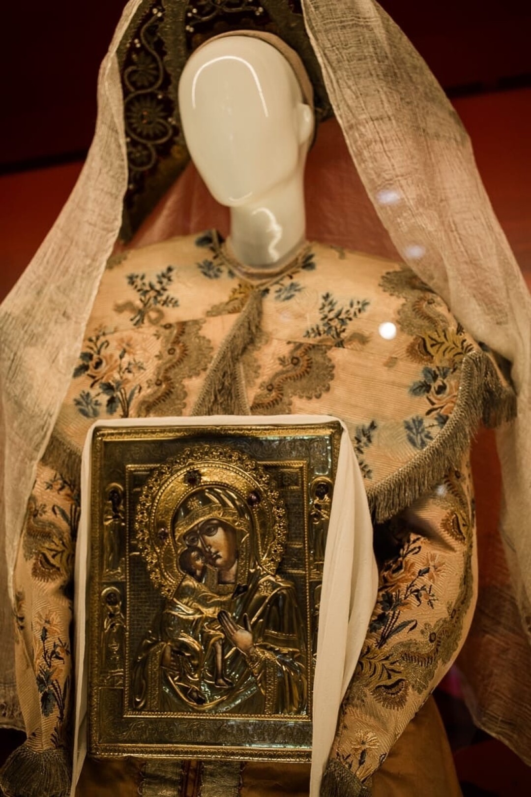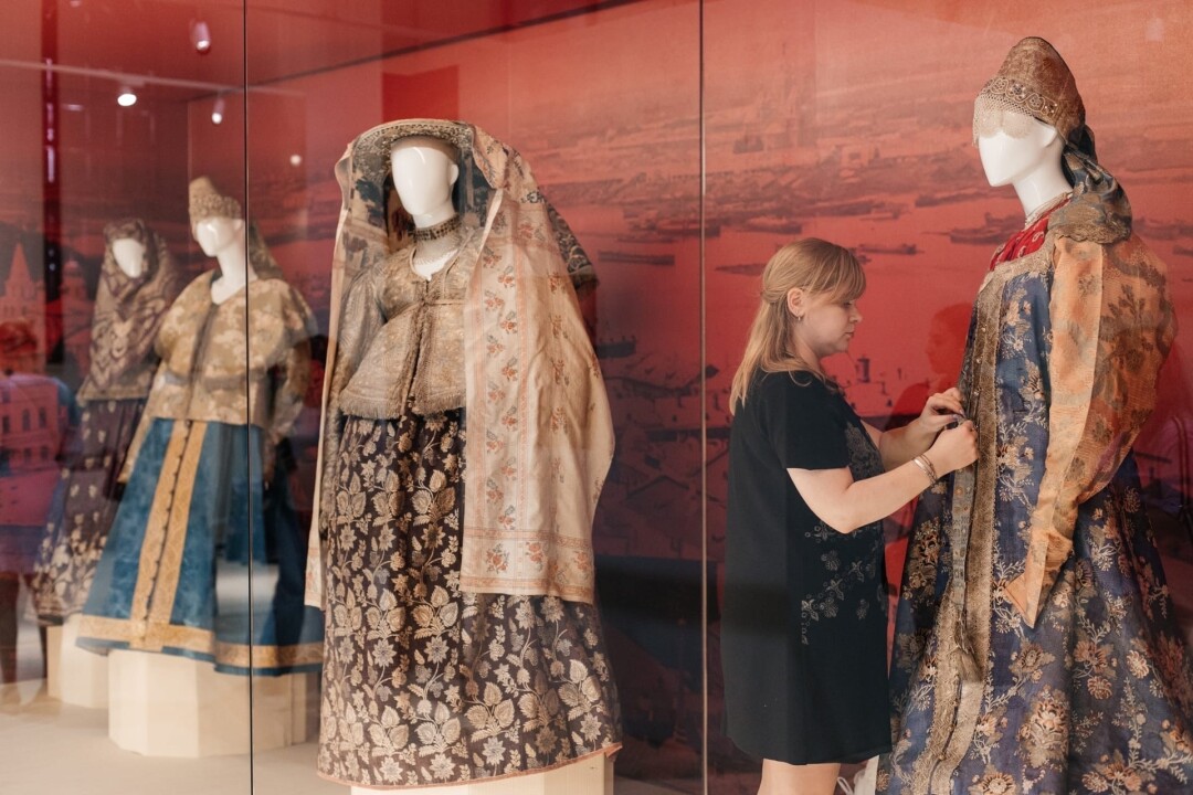 Он был очень разным. Поэтому мы и решили сделать первую в истории области полноценную выставку костюмов всех этносов, которые жили на Нижегородской земле. Все эти костюмы настоящие, их все носили. Они очень ценные, поэтому в витринах. Есть праздничные костюмы, есть повседневные. Девичьи сарафаны и сложные наряды замужних женщин. У татар удалось воссоздать костюмы всей семьи. Всего 69 комплексов.