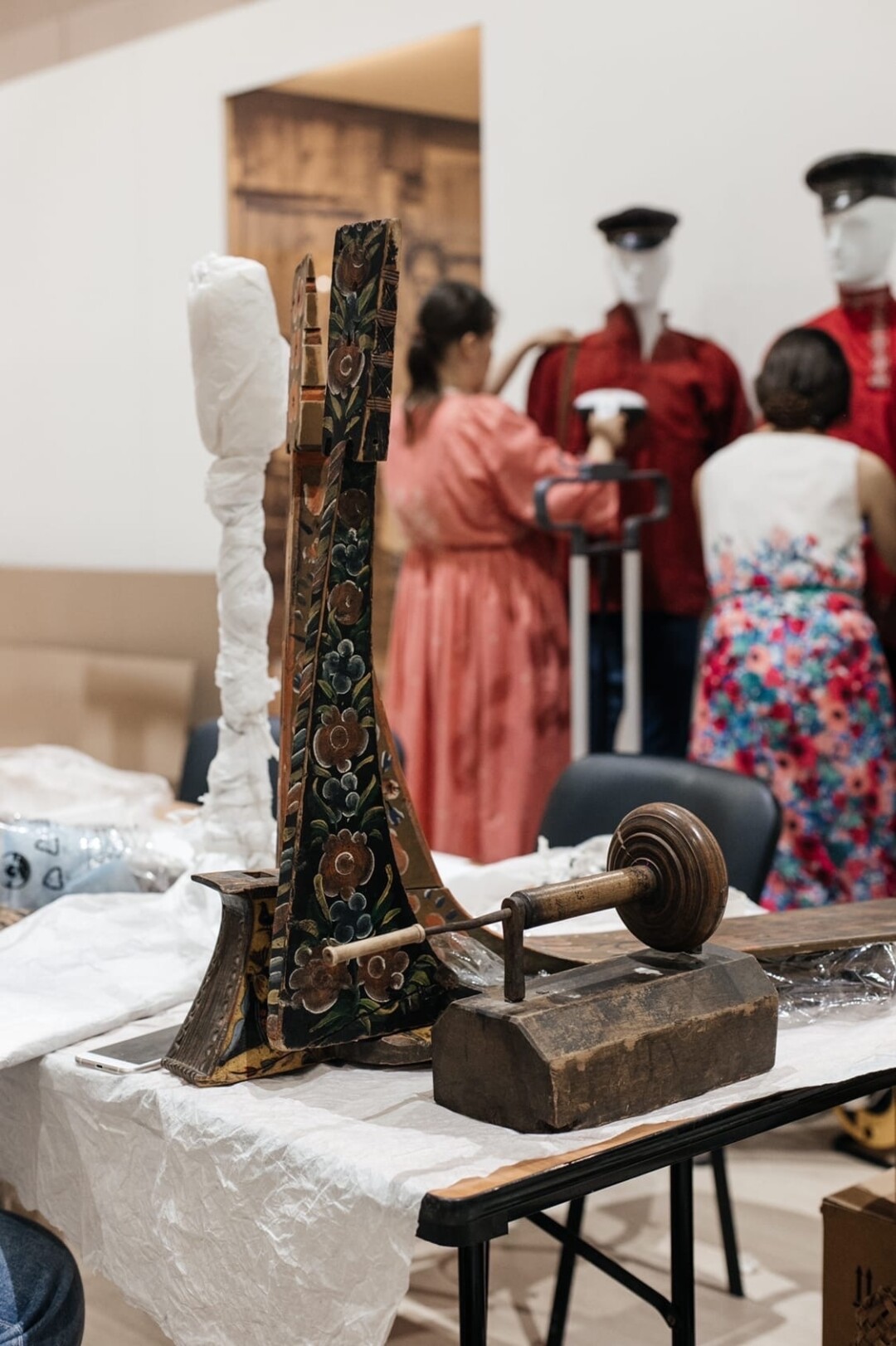 Да, я часто думаю, как нам повезло с городом. Сколько у нас исторических памятников. Представляете, если бы удалось сохранить все. Хорошо, что отстояли пакгаузы, будем делать там невероятные проекты. Идей сумасшедших много, сокровищ в запасниках достаточно. Вот и здесь среди нарядов настоящая береза и лодка 19 века, которая ходила по Ветлуге. Кузнечный горн и сани - все настоящее, никаких имитаций.