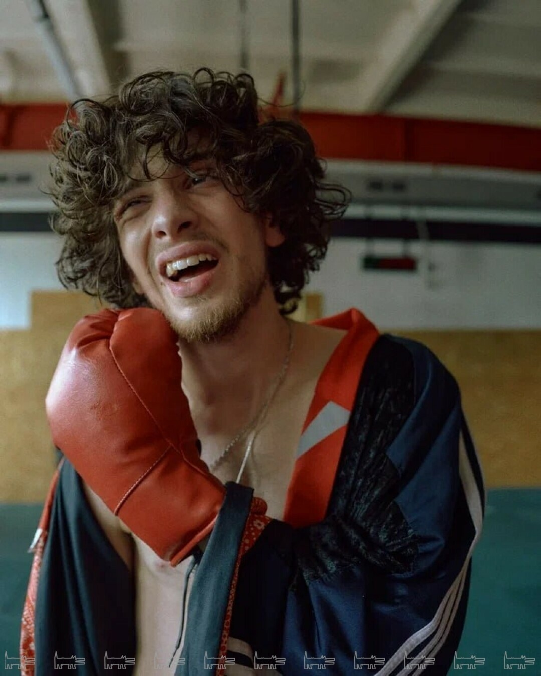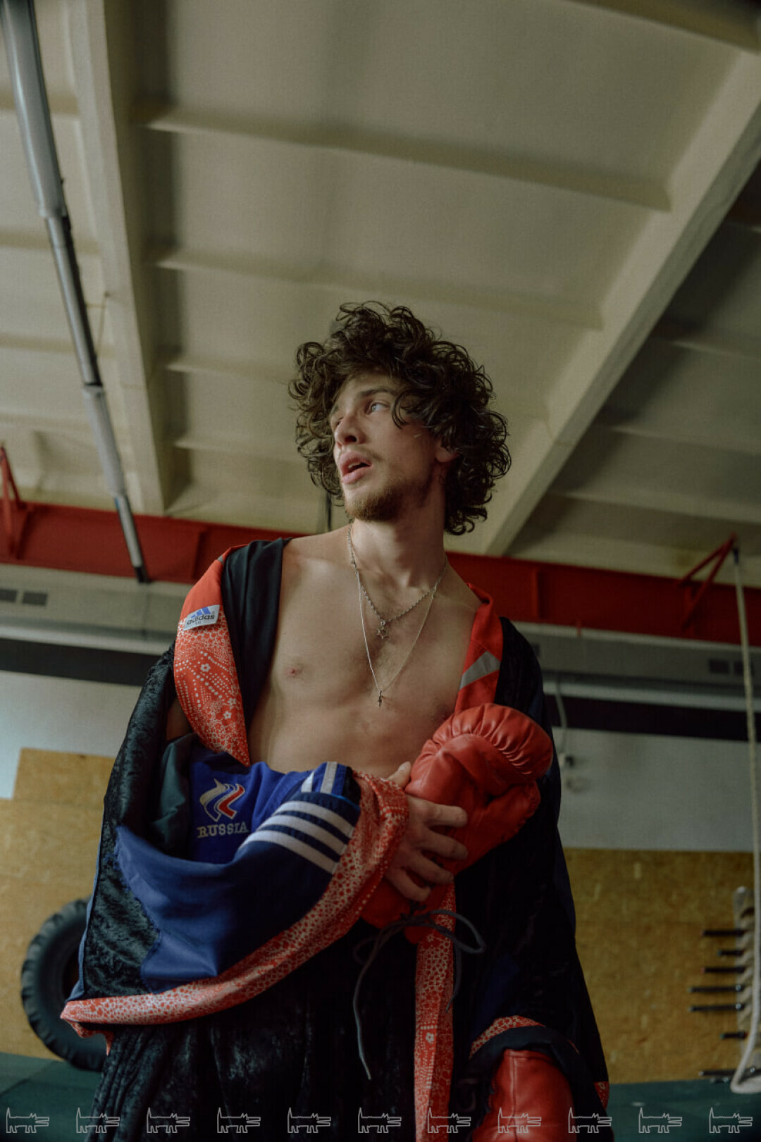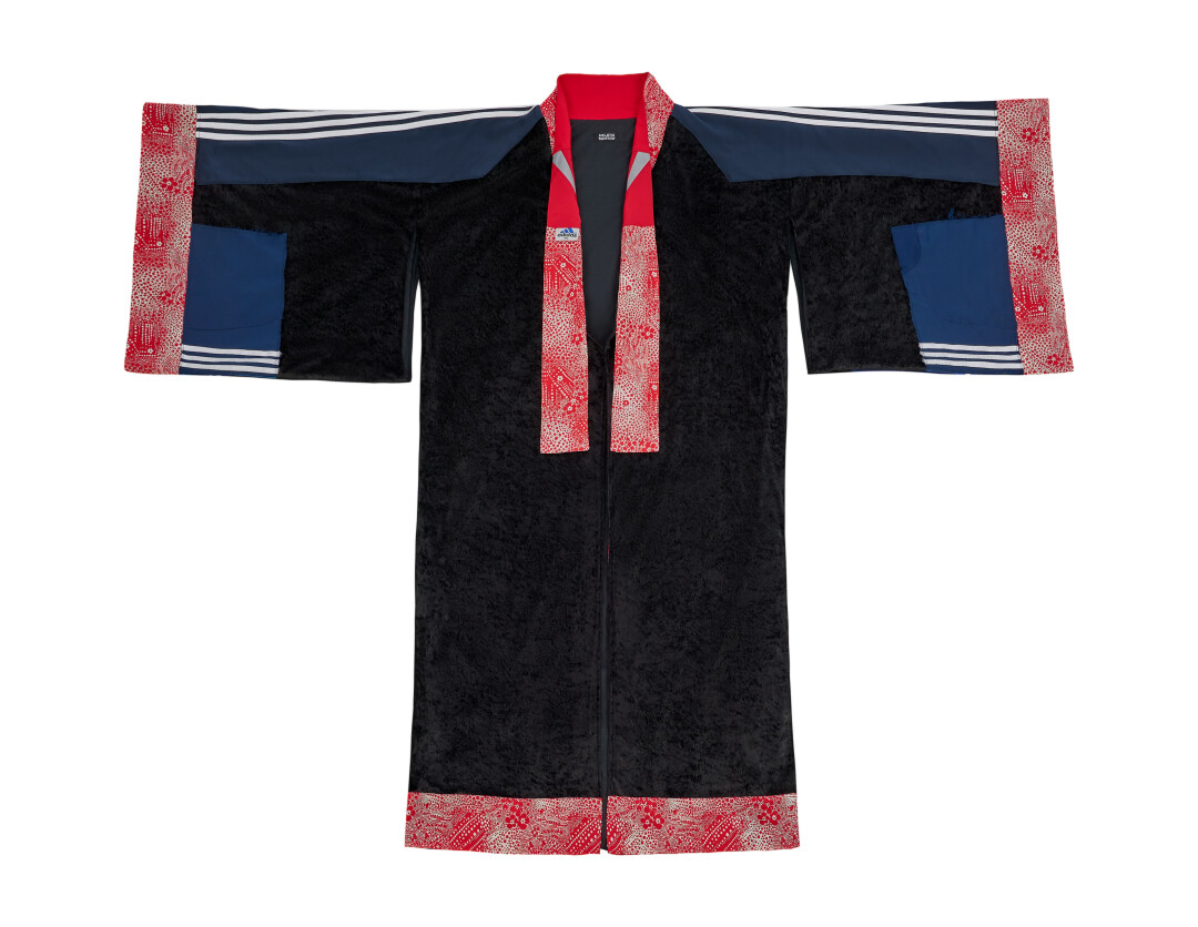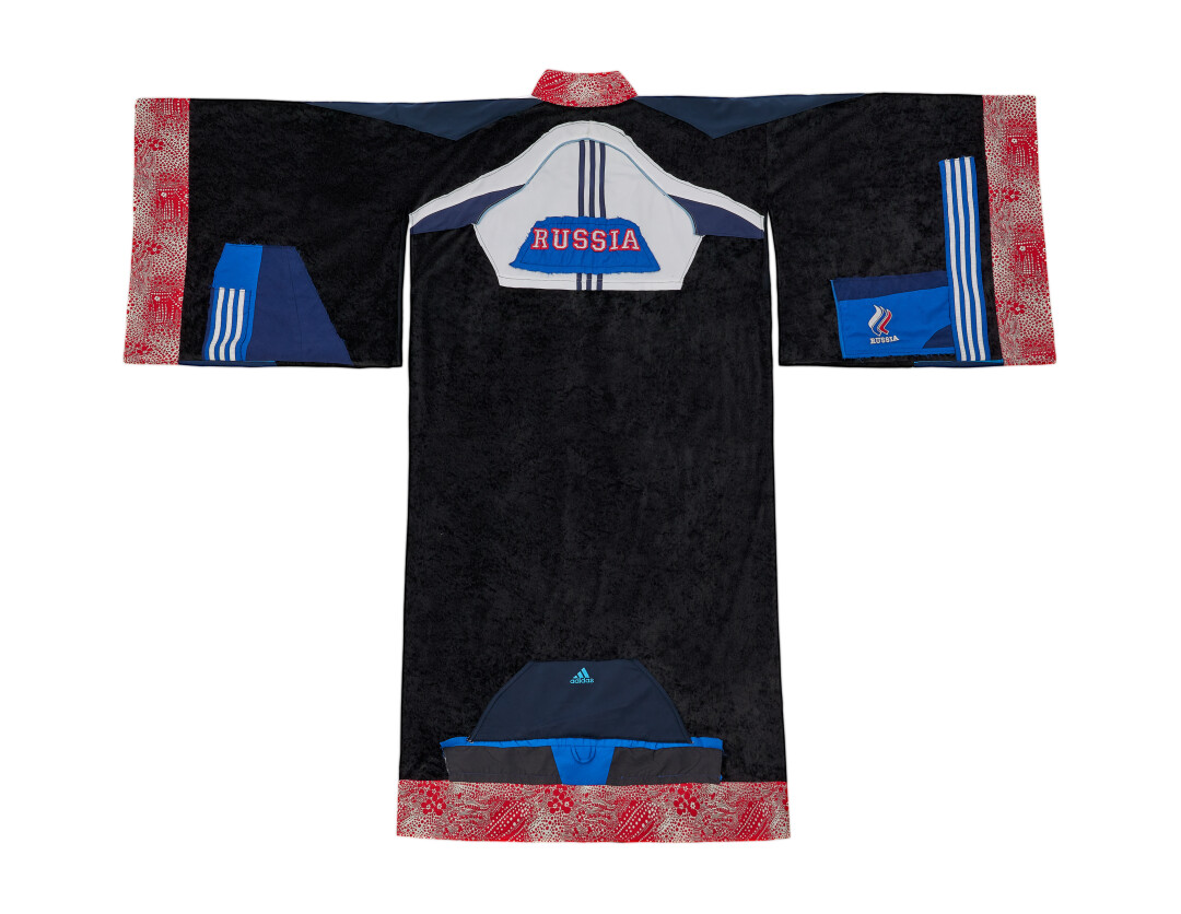 На первый взгляд, несочетаемые фактуры — наивные винтажные ситцы и детали спортивного костюма. Кимоно — прямая отсылая к истории боевых искусств. Я переосмыслила его традиционный характер, смешав спортивную поп-эстетику с культурным кодом русской провинции, что идеально раскрыло характер Марка.