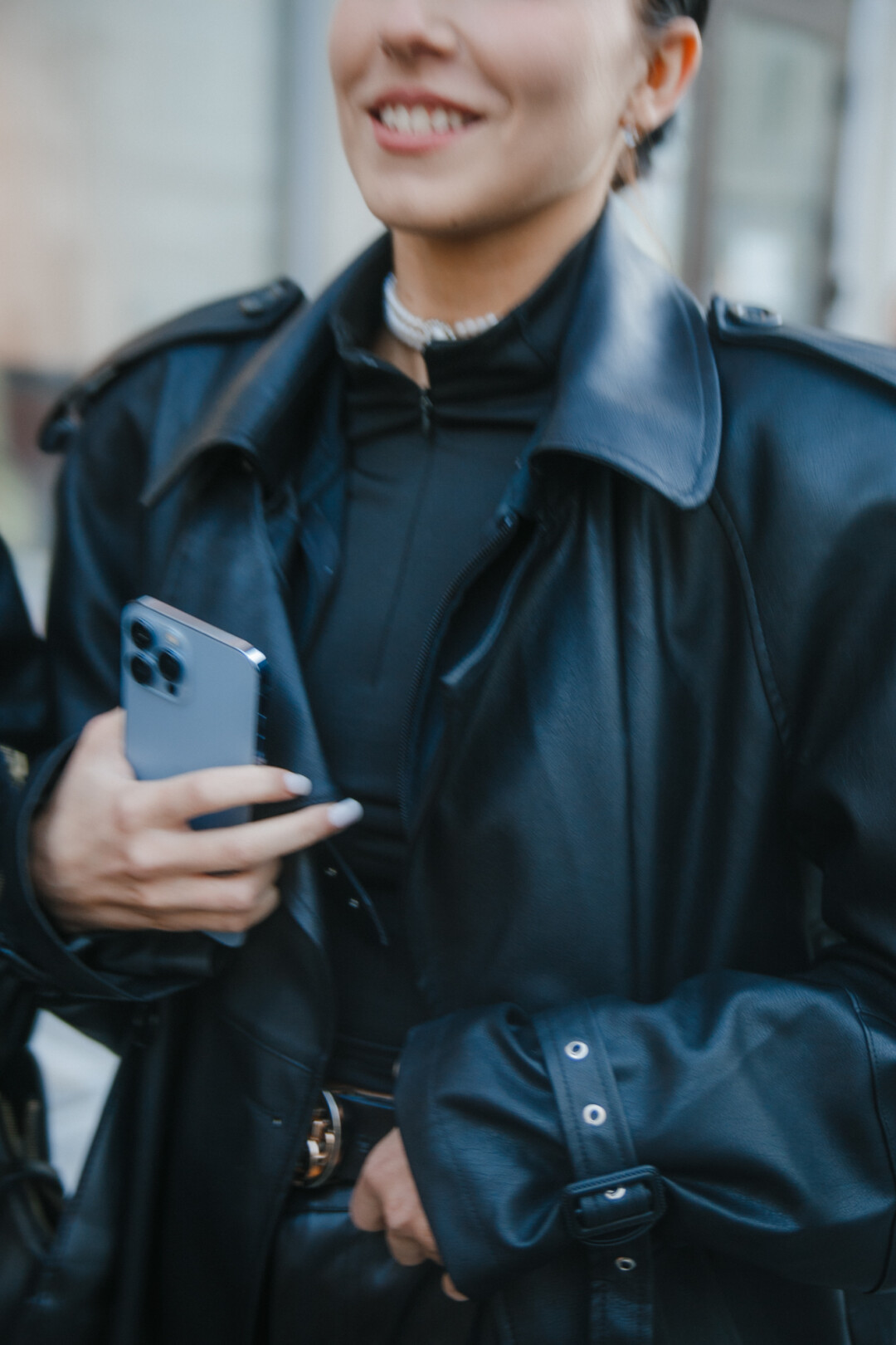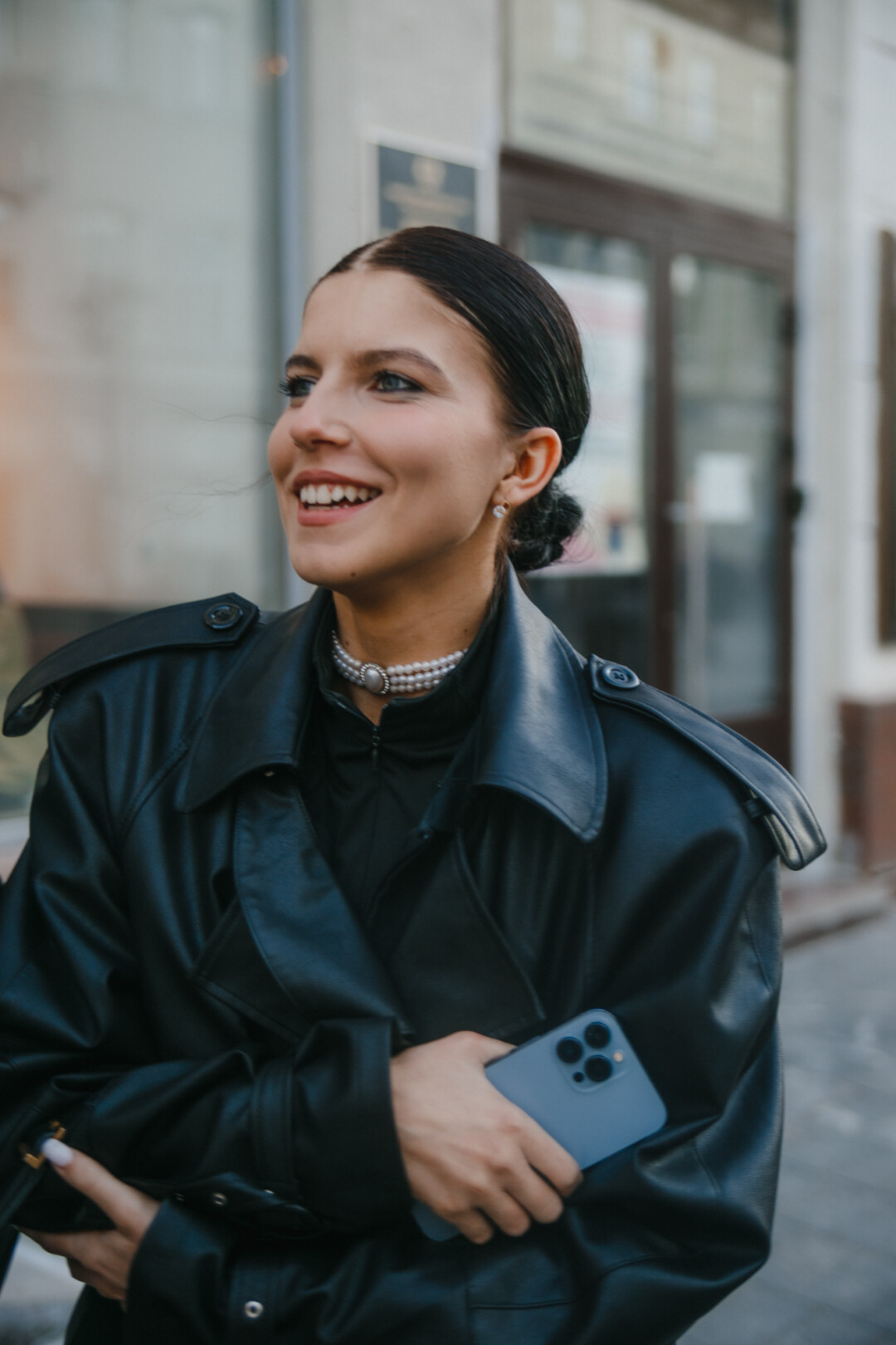 Зумеров из «Матрицы» мы заприметили издалека, тотал блэк-тандем мог вдохновляться, конечно, и персонажами Вачовски, но и стристайлом семейки Бибер тоже вполне. Собачий нюх не подвел: тяжеловес Saint Laurent, лимитированный New Balance (в чем же еще противостоять октябрьской слякоти?), кокетливый Dior, безымянный, но ультратрендовый бомбер. Верх у обоих, конечно, из кожи – не тренд, а вечная классика и любимый материал Ксении Собчак (ее легко представить в таком плаще). Получилось универсально, фактурно, брутально и нескучно.
