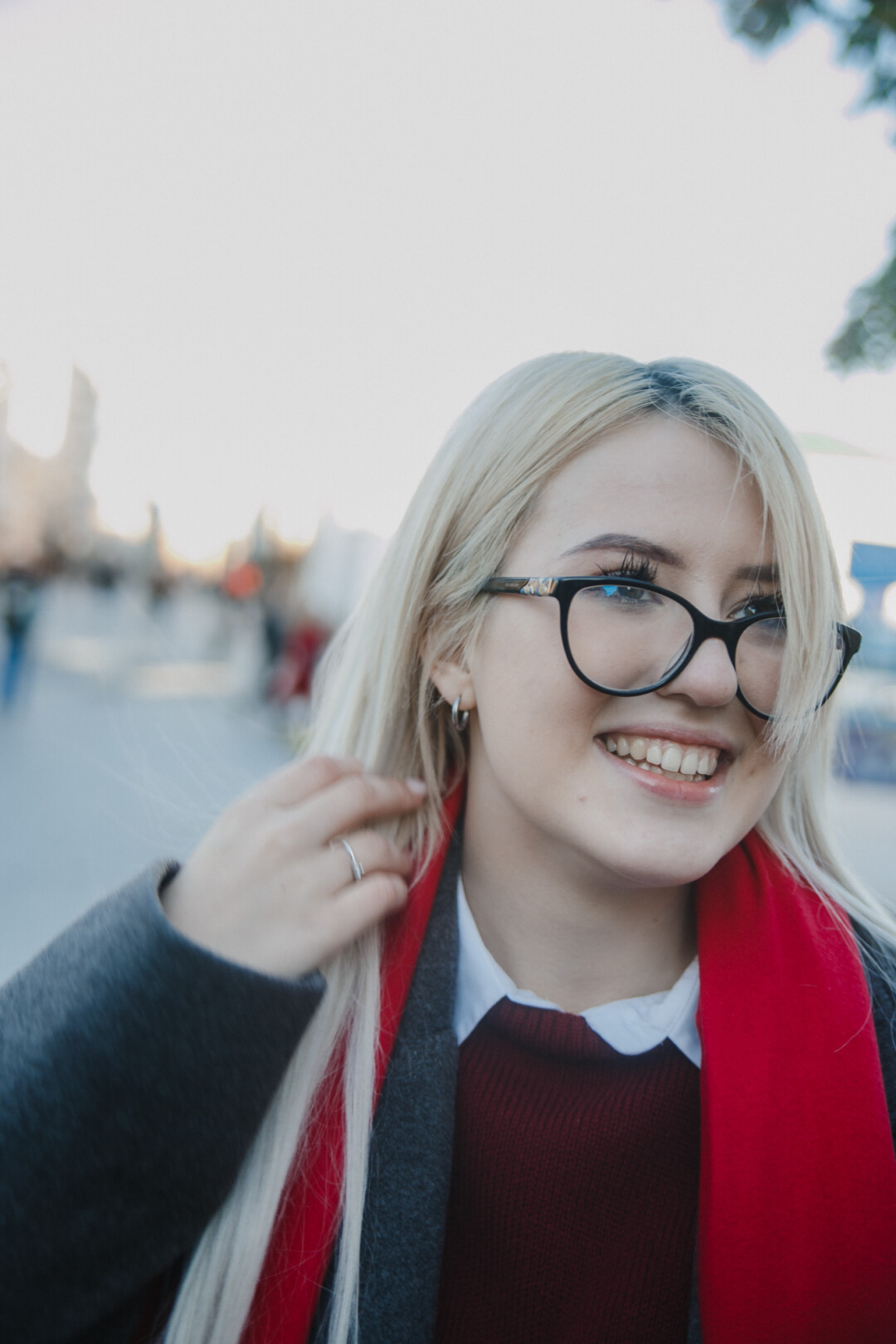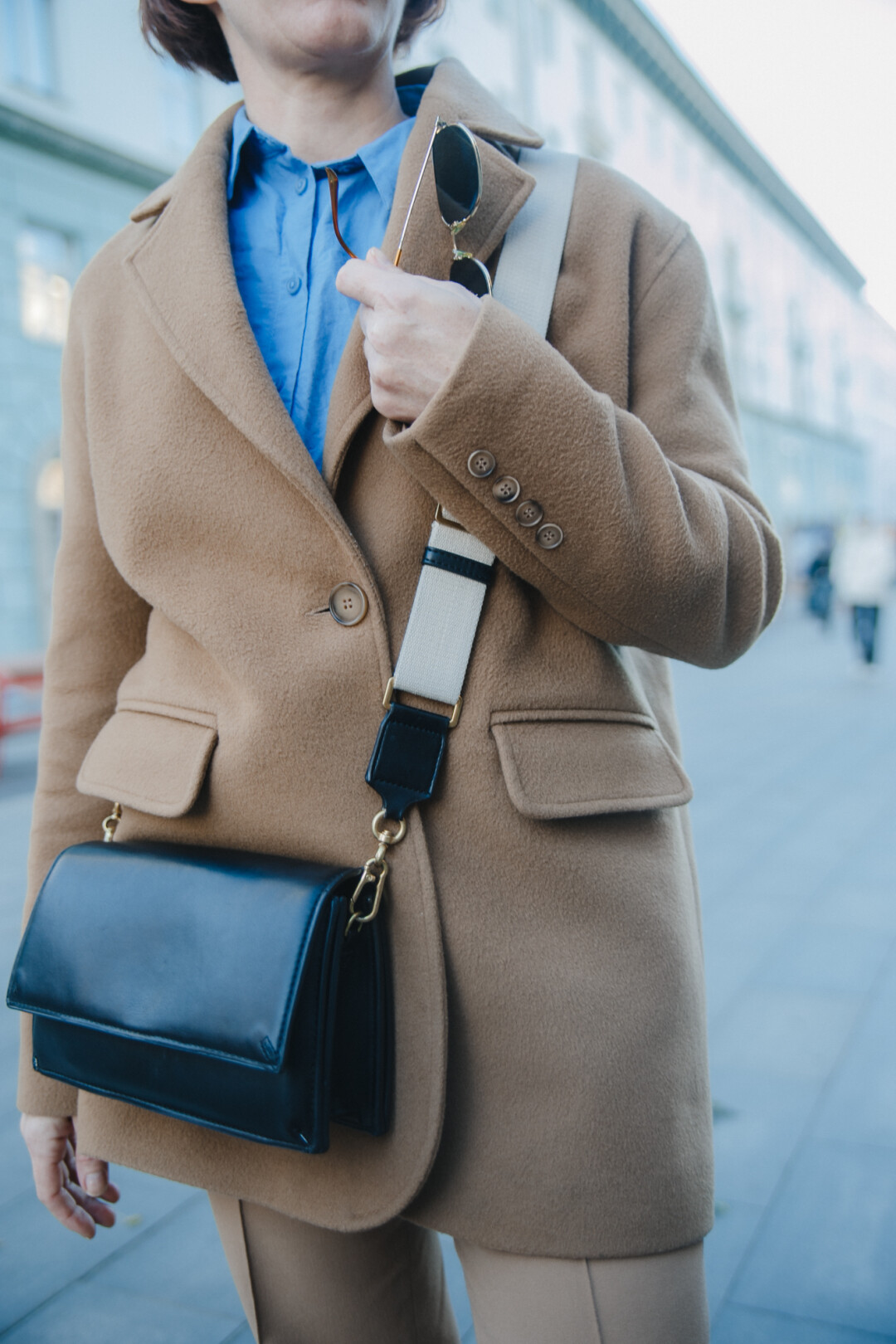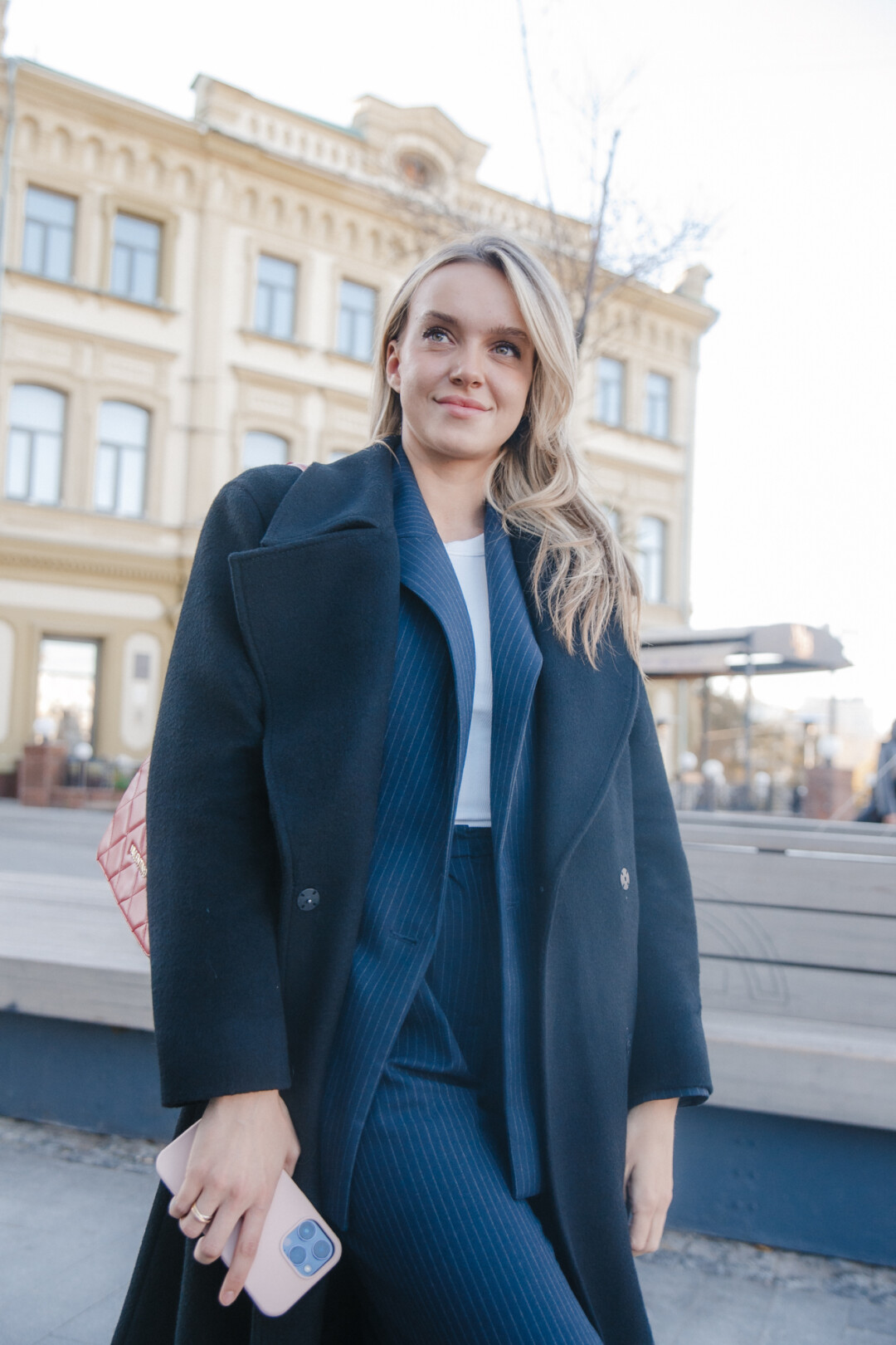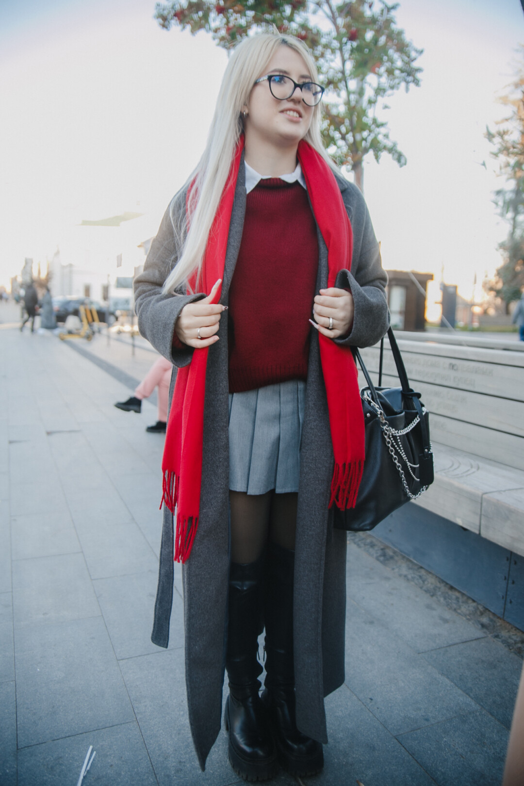 Леди в беже умеет миксовать русский и европейский массмаркет на 5+, за что и оказалась в прицеле нашего фотографа. Монохромный лук – выигрышный вариант для любого случая – на променаде ли вы, на хеппенинге или утреннике. Особенно одобряем небесно-голубой, так хорошо подчеркивающий медные локоны.