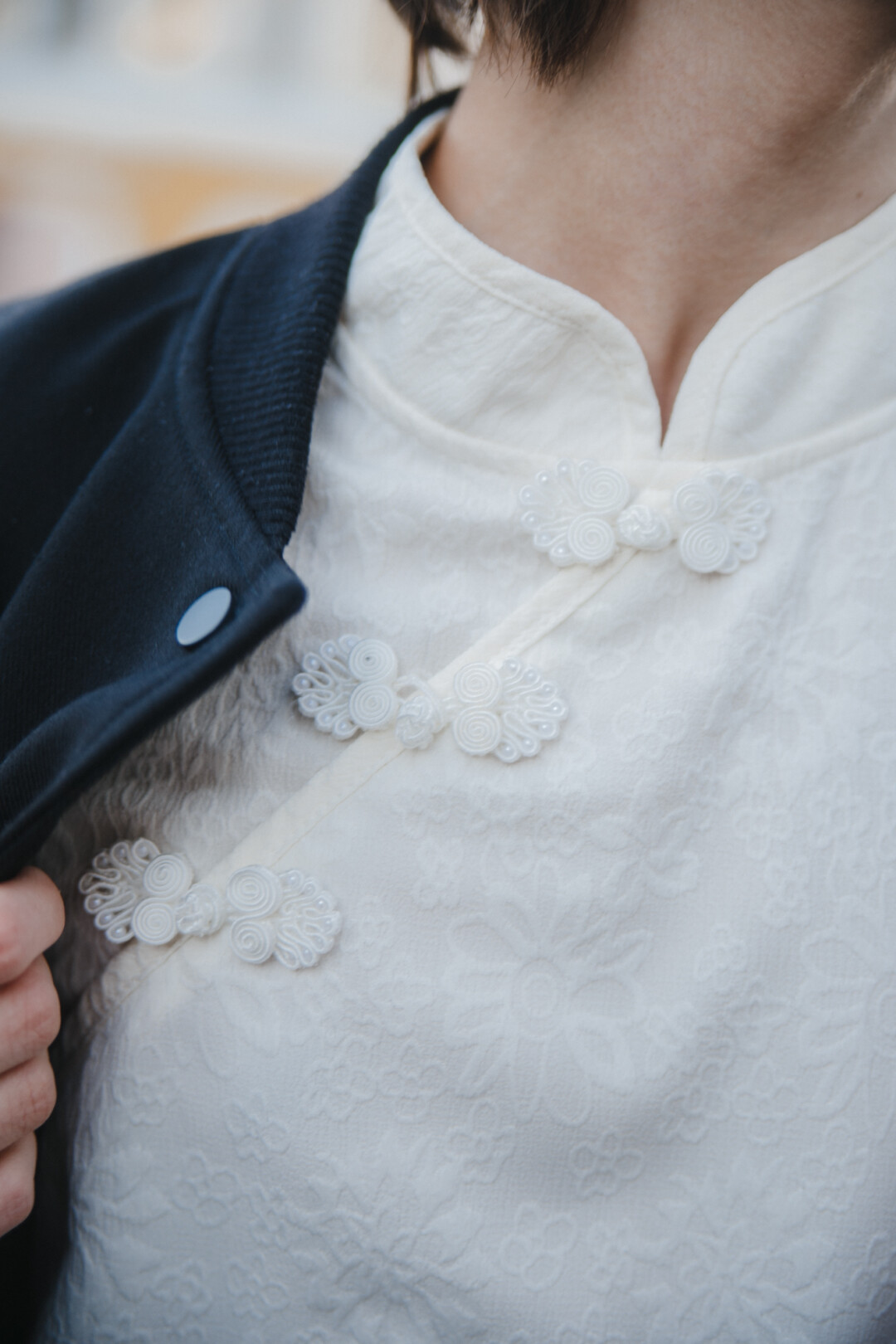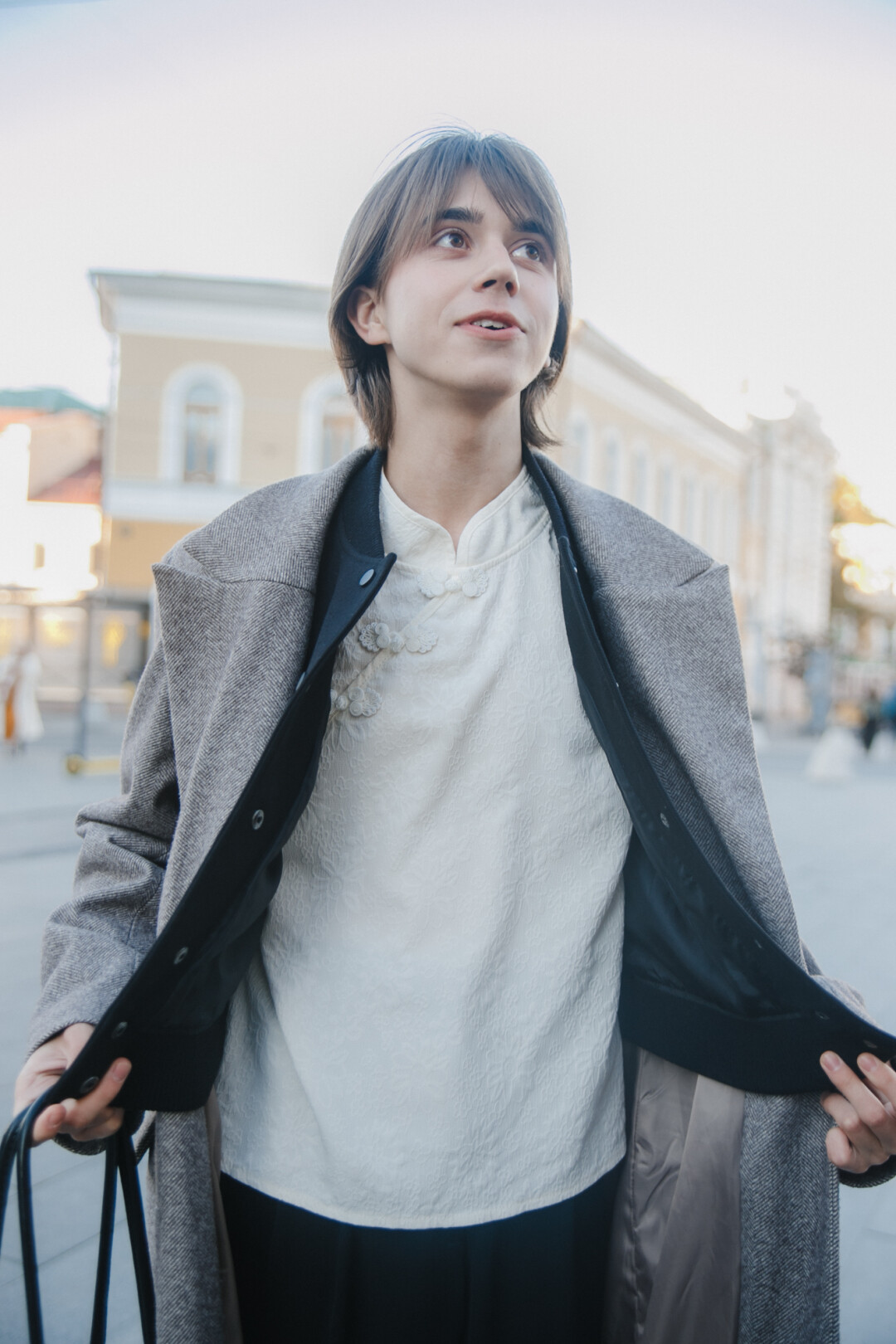 Парный лук получился с нотками азиатского стритстайла – то ли из-за косоворотки, то ли благодаря анимешному мини. Уверены абсолютно, приняли бы за своих на улице Такэсита.