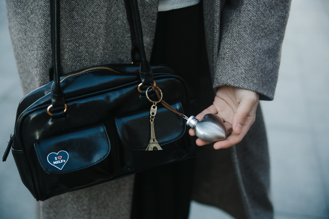 Стиль – «то пальто!», но в трендовом обвесе. Теперь судят не по обуви, как завещала мама Фореста Гампа и героиня «Москвы слезам не верит», а по брелокам на сумке. У Ники железный пудель на многослойной цепи (студентка филфака перечитывает «Узника» Пушкина?), а вот Никита делает заявления не лейблами, но правдивыми статусами. Со значком I like MILF's все понятно (старших надо уважать, и не только), но вот что плещется в мини-фляге в форме ягодиц купидона – загадка.
