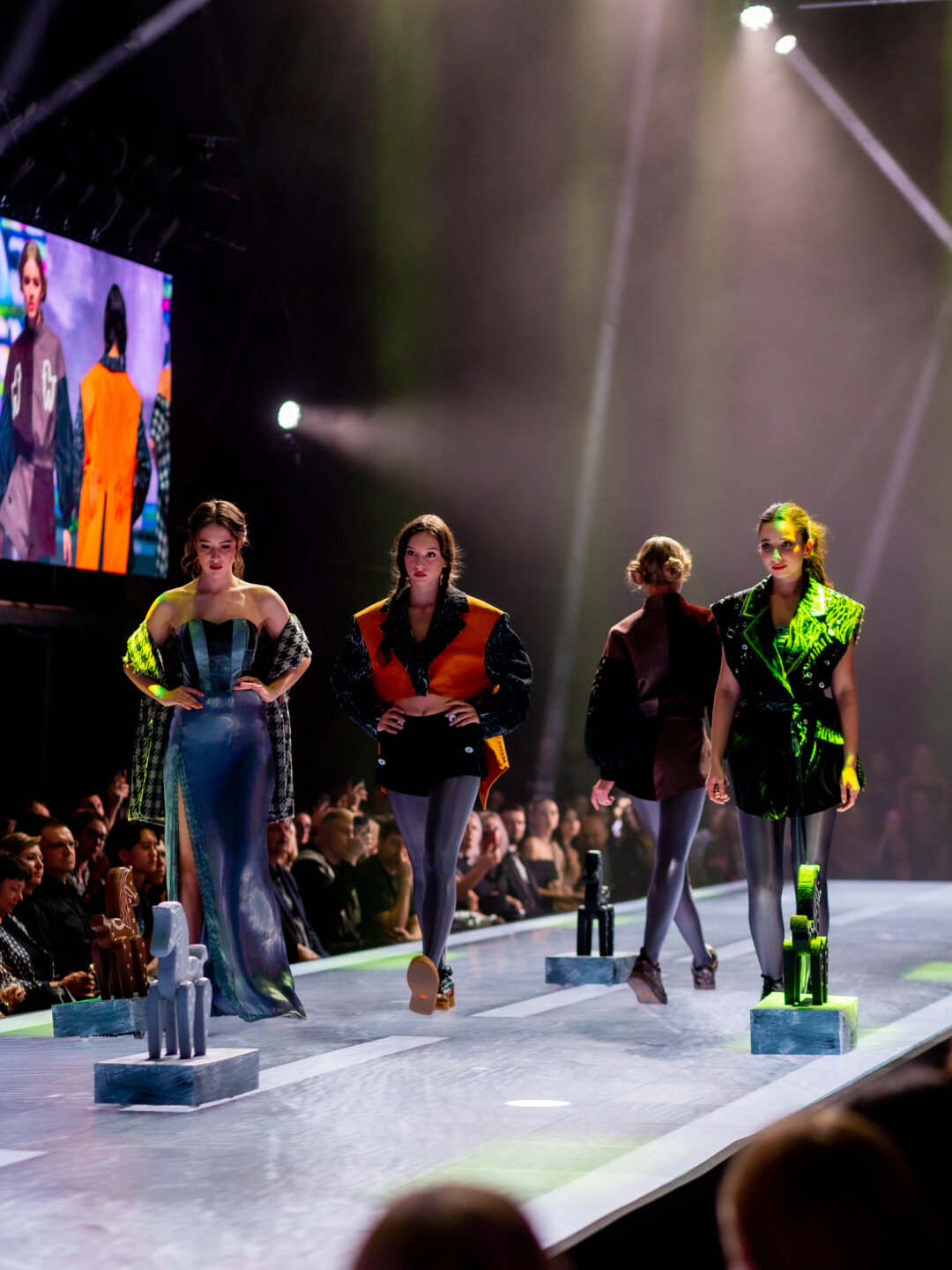Акт второй — «Форме». За образы моделей отвечали дизайнеры Дарья Свиридова и Юлия Борисенко в коллаборации с кастом-гуру Филиппом Определяковым и художником Ильей Спиченковым. Последний одарил всех финалисток коронами и резвыми скакунами собственного изготовления.