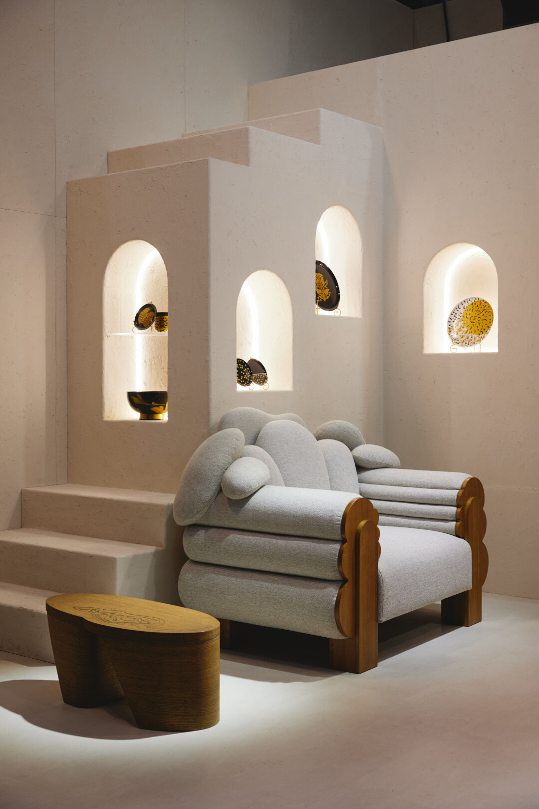 В декабре в московском ГУМе открылся бутик Хохлома x Алена Ахмадуллина. На 600 м² поместились не только премиум-луки и ювелирные украшения, но и интерьерный декор, деревянная утварь и мебель. И нет это теперь не просто хохломские стульчики и лошадки, на которых проводили свое детство миллениалы. Поговорили с дизайнером о том, как осовременить почти четырехсотлетний промысел, в какой интерьер впишется диван в форме кудрины (!) и сколько времени потребовалось на создание коллекции.