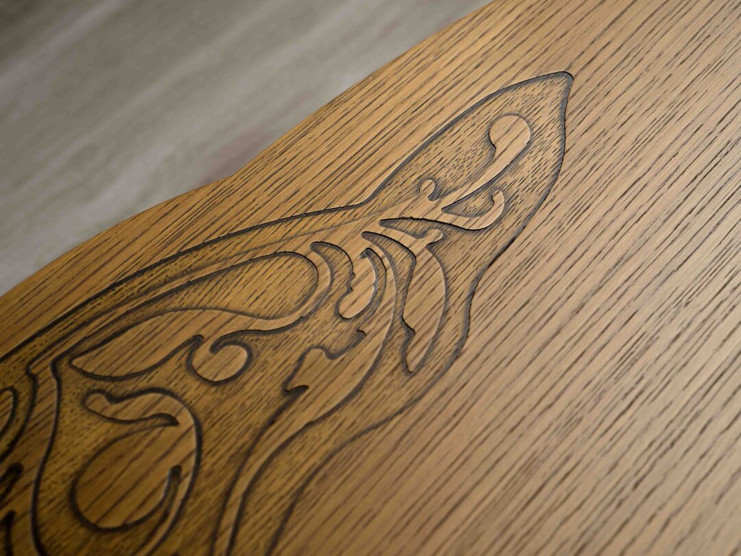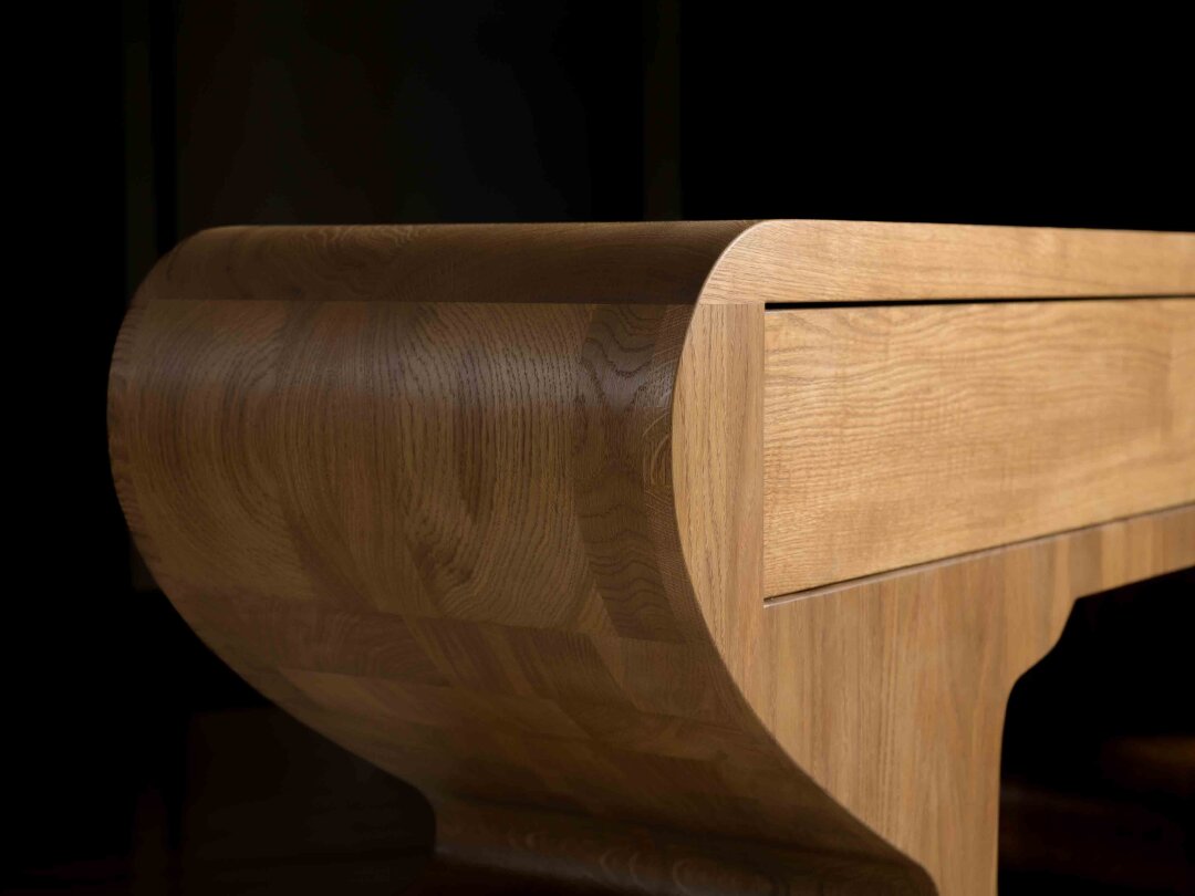 Основной упор мы сделали на натуральные материалы. Большая часть изделий выполнена из массива дуба, дополненная по необходимости натуральным шпоном дуба. Для мягких элементов отбирались премиальные мебельные ткани.