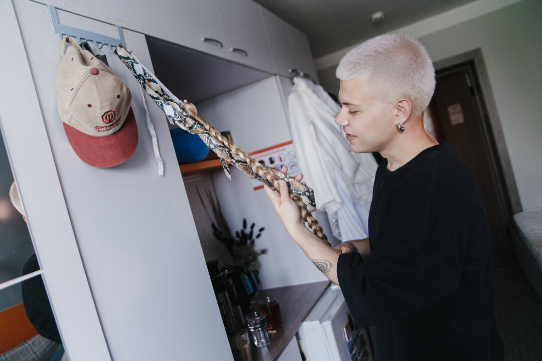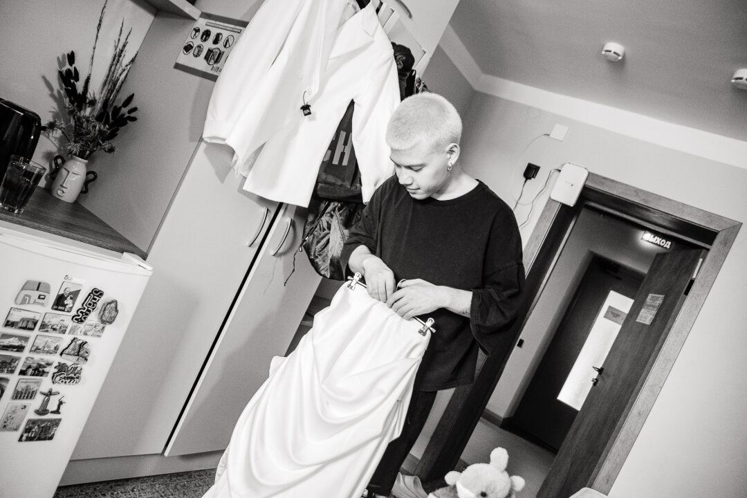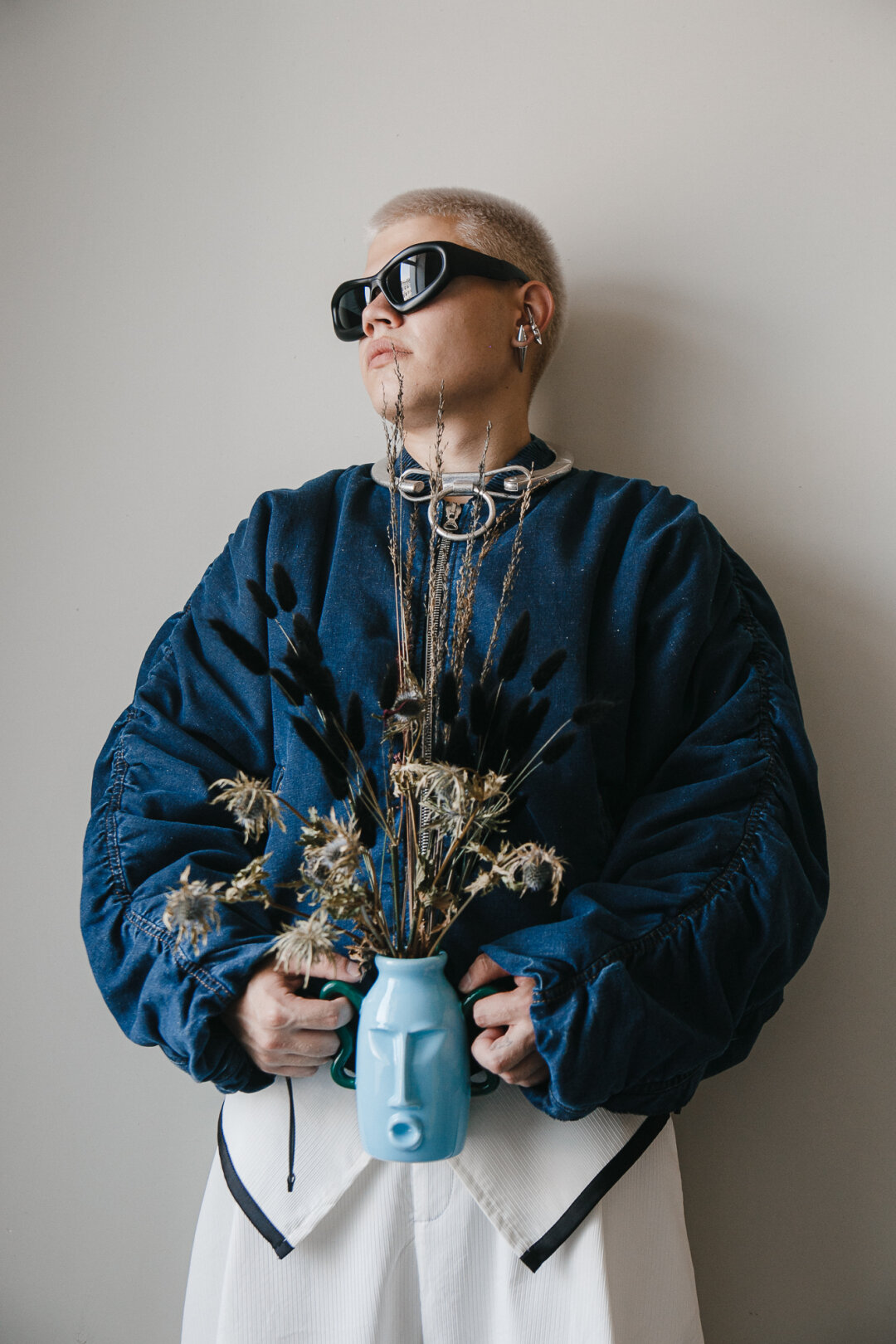Он называет свой гардероб «бреднями сумасшедшего» и «кладезем уникальных вещей», совмещает «зумерский люкс с родным масс-маркетом» и дезавуирует моветонность микса баленсы и бифри. Редакция «НН.Собака.ru» взяла у Димы Казаха урок рьяной эклектики (носить вазу как клатч!), смелого преподнесения собственной исключительности и съемок high fashion в общежитии (look at this галстук-коса а-ля Schiaparelli). Между переодеваниями поговорили с основателем апсайкл-бренда KZD, юристом по профессии и модельером по призванию, о тяге к люксу (хотя и без WB не обходится), избыточному вниманию к себе (прятки в XL не помогают), любимой паре кроссовок-путешественников и несбывшейся (пока!) карьере скейтера.
