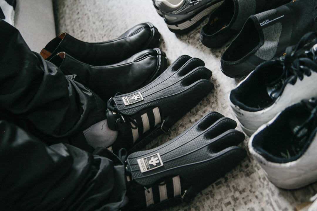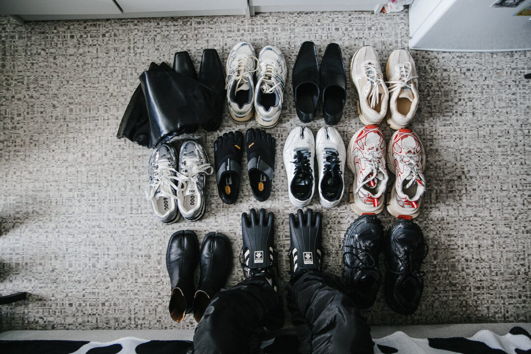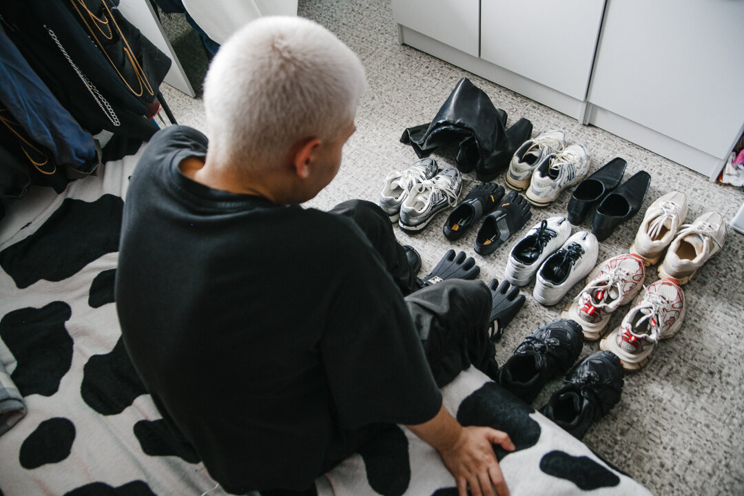 Обуви у меня много – из спортивных брендов Adidas, Nike и Balenciaga, но есть и таби Maison Margiela и сумасшедшие Vibram FiveFingers. У меня разношерстный гардероб, ненавижу стандартную обувь. Все мои кроссовки яркие, каждая пара значимая. Но самая интересная история, конечно, у Avavav. Моя тетя везла их из Австрии через Германию и Казахстан. 2,5 месяца транспортировки того стоили.
