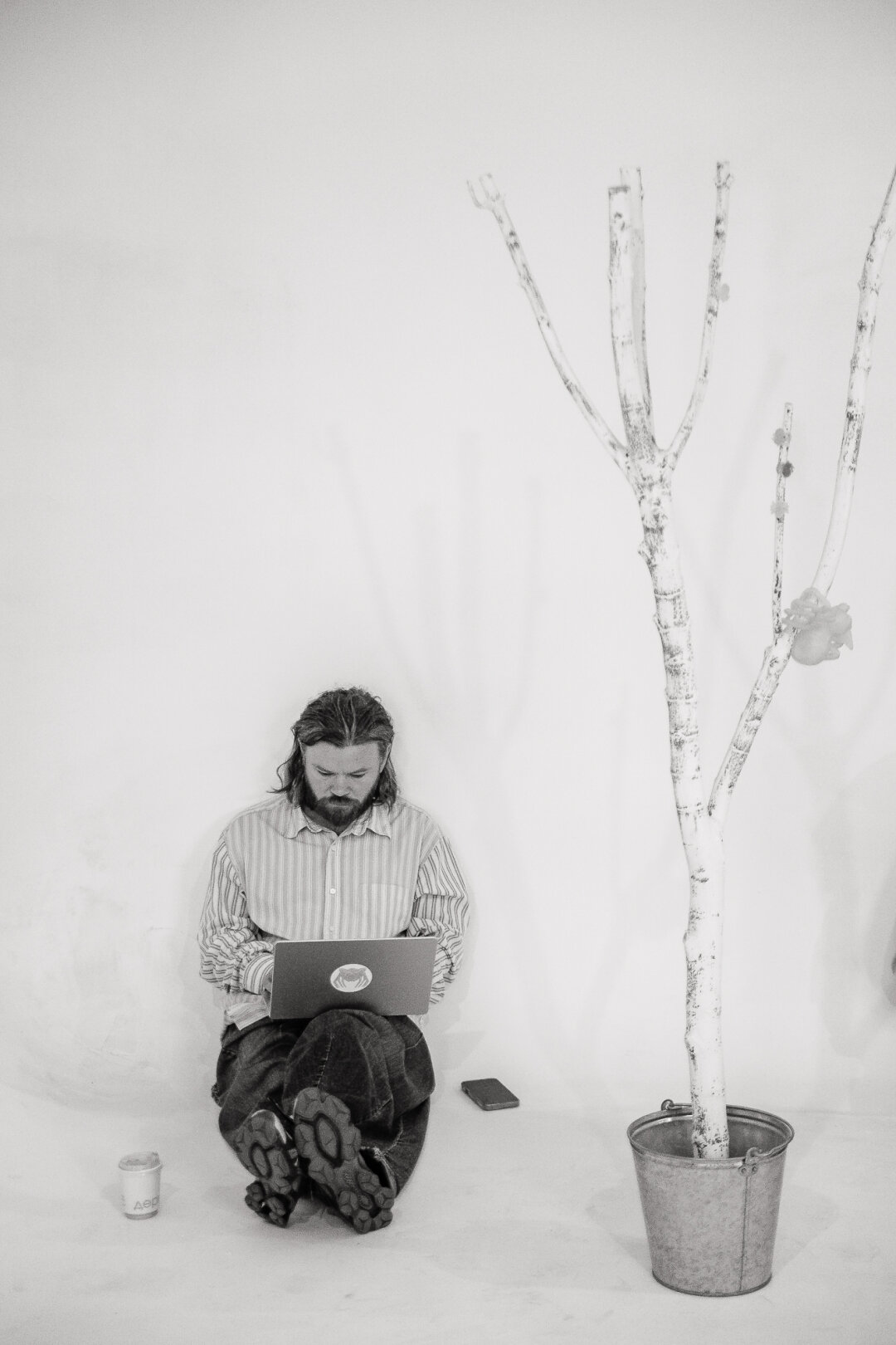 Чемоданы с пряжей, кружевной олень, выводок разноцветных Чихпауков (!), береза в ведре и свежая циклорама. Поздравляем, вы в студии Игоря Андреева – первого участника первой модной арт-резиденции Нижнего. За две недели основатель бренда Vereja и креативный директор The Blueprint успел опутать сетями и устлать коврами всю модную округу, превратить художницу Вацу в таинственную Вилу, опробовать на себе рукодельное шибари от местных бабушек и научить вязать всех, до кого дотянулся. Подробности – в сентябрьском номере журнала «НН.Собака.ru». Теперь связаны навсегда! А здесь и сейчас – про Нижний как столицу сплетен («Прикольно, что никто не расходится в показаниях»), новом мужском бренде («Мы делаем Джонатана Андерсона из СССР») и теневой стороне дизайнера-человека-арт-дельца Андреева.