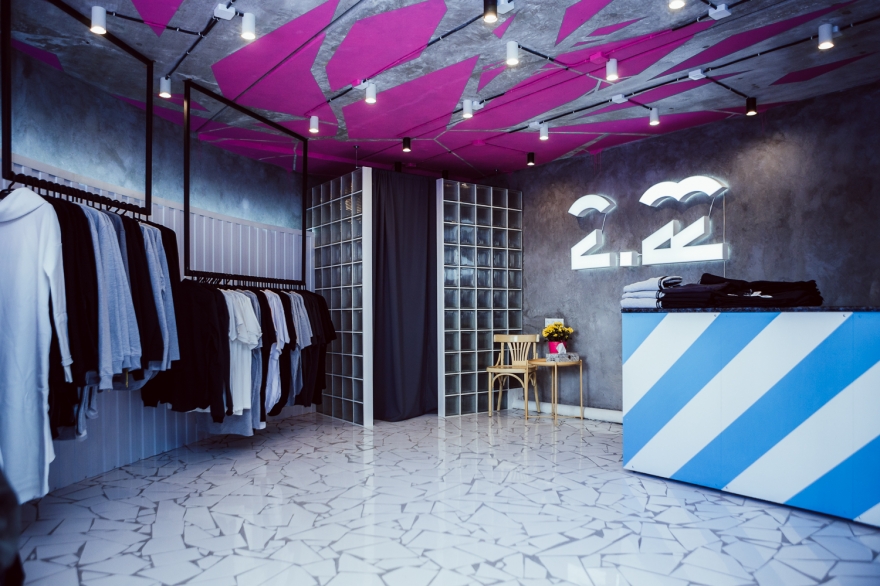 Идея запустить магазин возникла спонтанно: в конце прошлого года три друга Евгений, Андрей и Сергей сидели вечером в баре и в шутку рассуждали, как было бы здорово открыть модный бутик в стиле компьютерной игры GTA Vice City с неоновыми лампами и ретровейвом в качестве фоновой музыки. Но шутка, что называется, зашла, и в середине января команда будущего 2|22 Store начала активную подготовку к запуску нового магазина одежды. В процессе создания проекта было решено сделать ставку на сотрудничество с независимыми брендами и дать новую жизнь качественному стритвиру в Нижнем Новгороде.