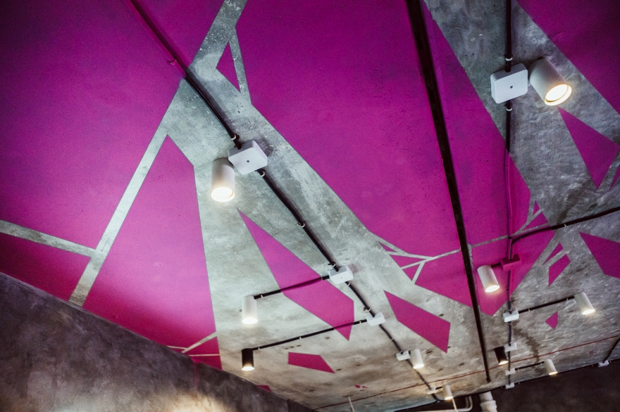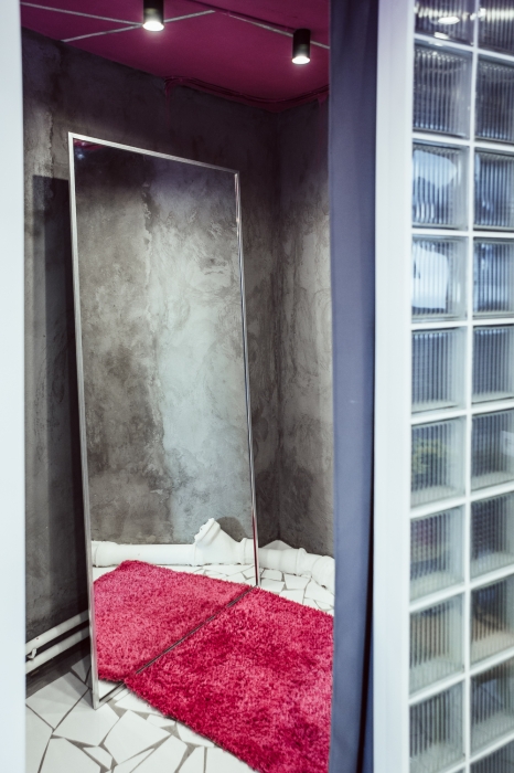 Дизайном проекта занимался архитектор Миша Маслов, который соединил в интерьере тенденции минимализма, стиль лофт и неоновые вывески, что в сумме дает ощущение гармоничной эклектики. Пространство магазина играет на контрастах: ярко-розовые лампы соседствуют с черными металлическими рейлами и белой колотой плиткой на полу, но при этом ничего не отвлекает внимание от выбора одежды. В музыкальном оформлении создатели решили остановиться на джазе, чтобы поддержать концептуальное разнообразие проекта на всех уровнях его восприятия.