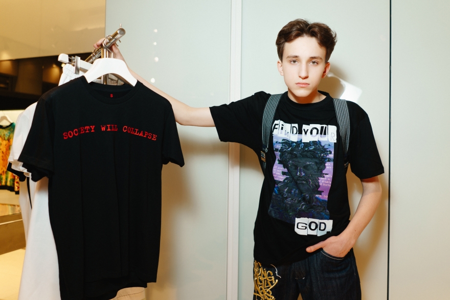 В скором будущем дизайнер планирует расширить линейку одежды за счет худи и свитшотов, а пока его коллекцию можно найти в Milo Concept Store, где недавно прошла вечеринка и презентация новых брендов.
