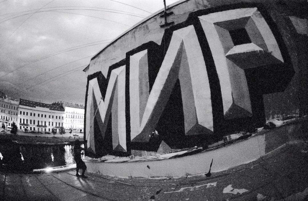 В Санкт-Петербурге на крыше дома, расположенного слева от Аничкова моста, – это самое просматриваемое место в городе. Я переживал из-за событий на Украине и однажды ночью сделал надпись «МИР» объемными буквами синего цвета, который олицетворяет спокойствие. Она была размером примерно 15*6 метров, и это самый большой рисунок в центре Петербурга. Так я выразил свой мирный протест.