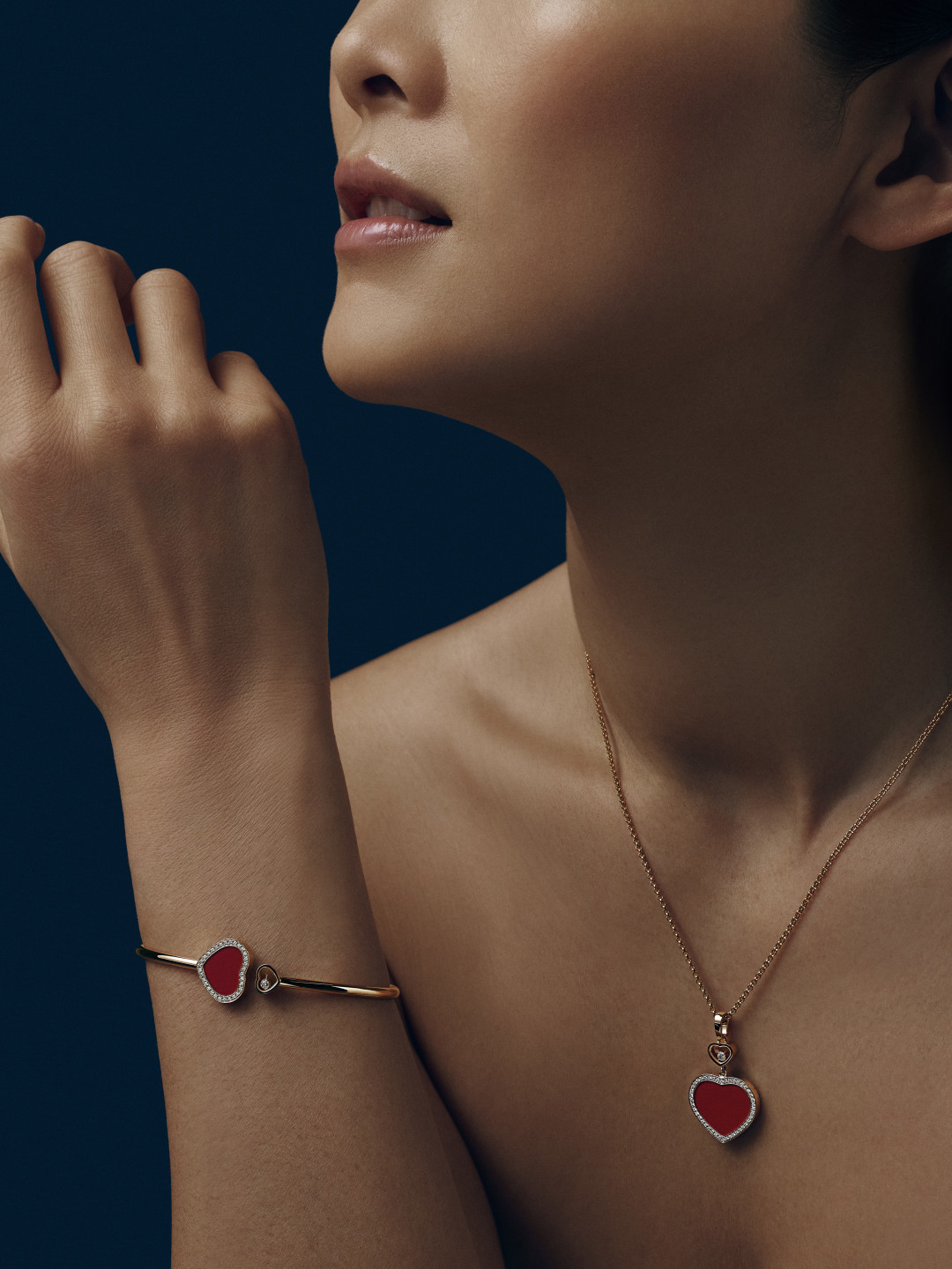 Швейцарский ювелирный бренд Chopard пополнил свою традиционную коллекцию Happy Hearts новыми украшениями. Они объединяют два главных символа линии — сердце и плавающие бриллианты. Итог: драгоценности из перламутра, оникса и красного камня в бриллиантовом обрамлении.