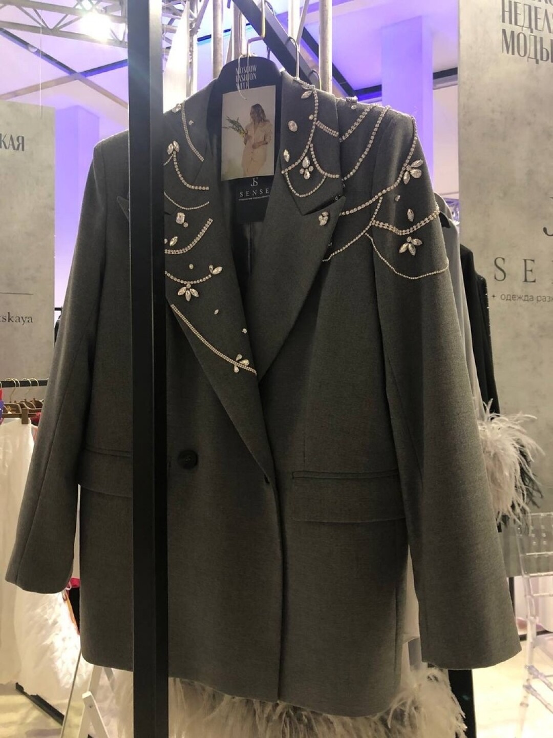 Первые дни выставки выпали на выходные, и у нас не было отбоя от гостей. Всех, помимо прочего, очень заинтересовал наш расшитый камнями жакет, кажется, что его сфотографировал каждый второй.